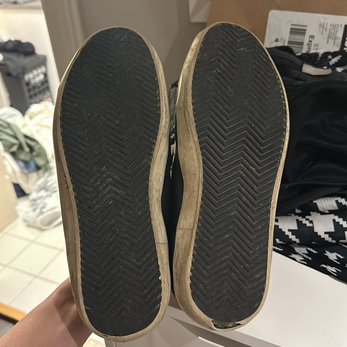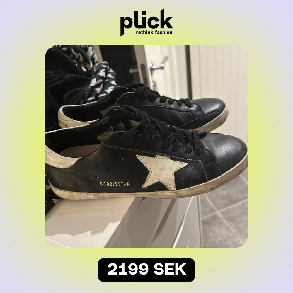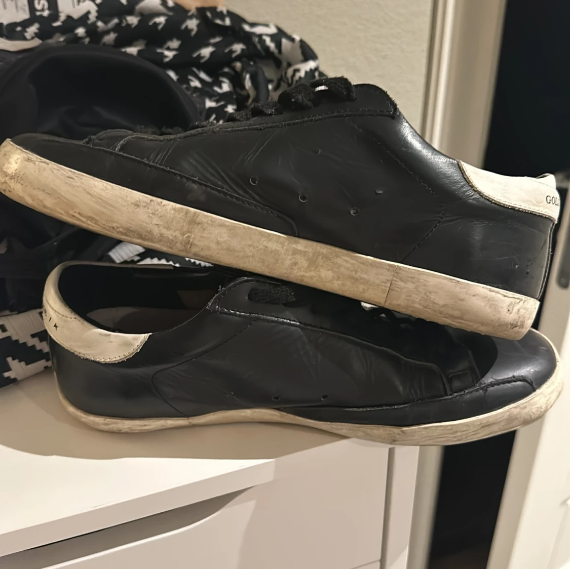 Svarta golden goose med lite slitning på sulan men går lätt att fixa. Passar 42-43. Skriv vid funderingar.