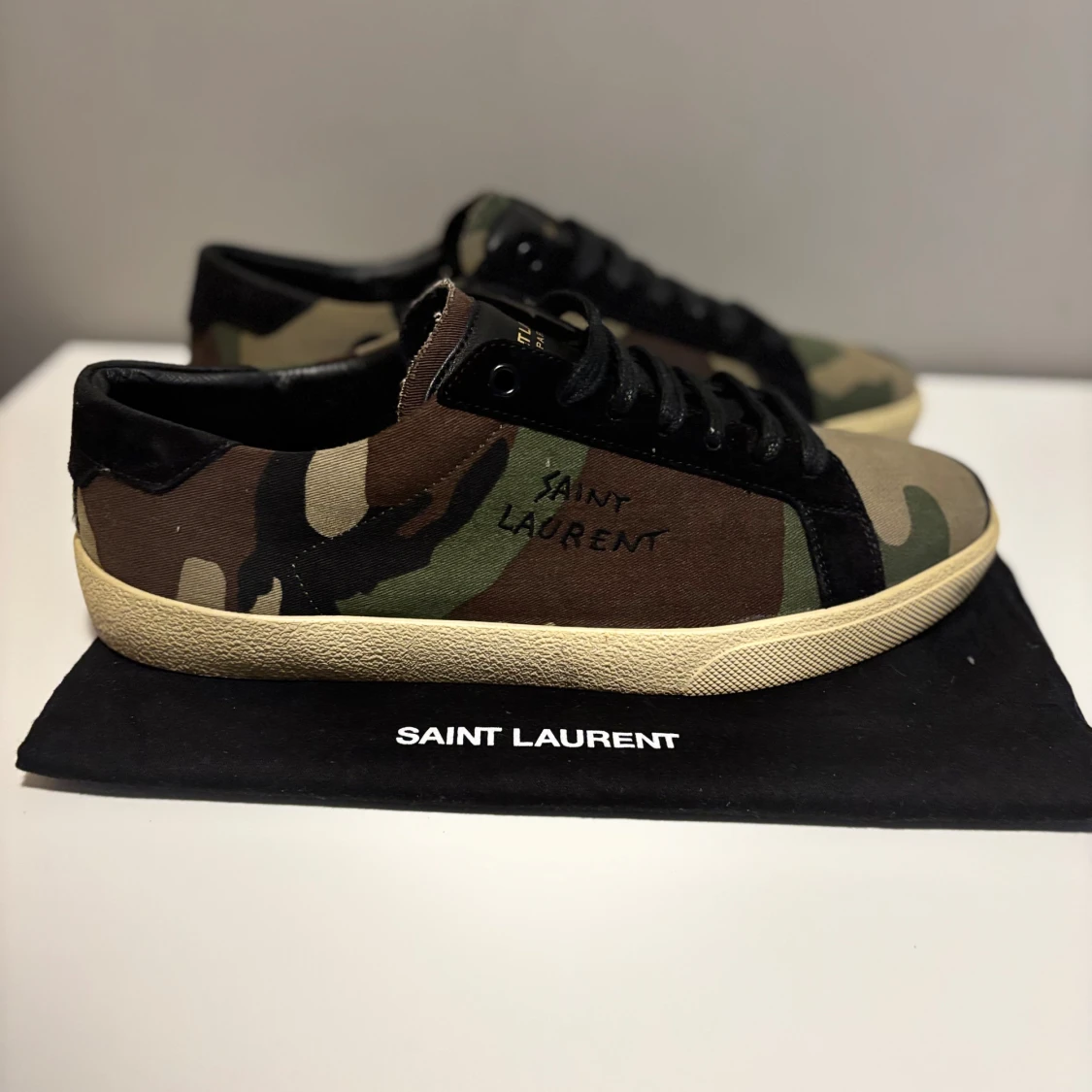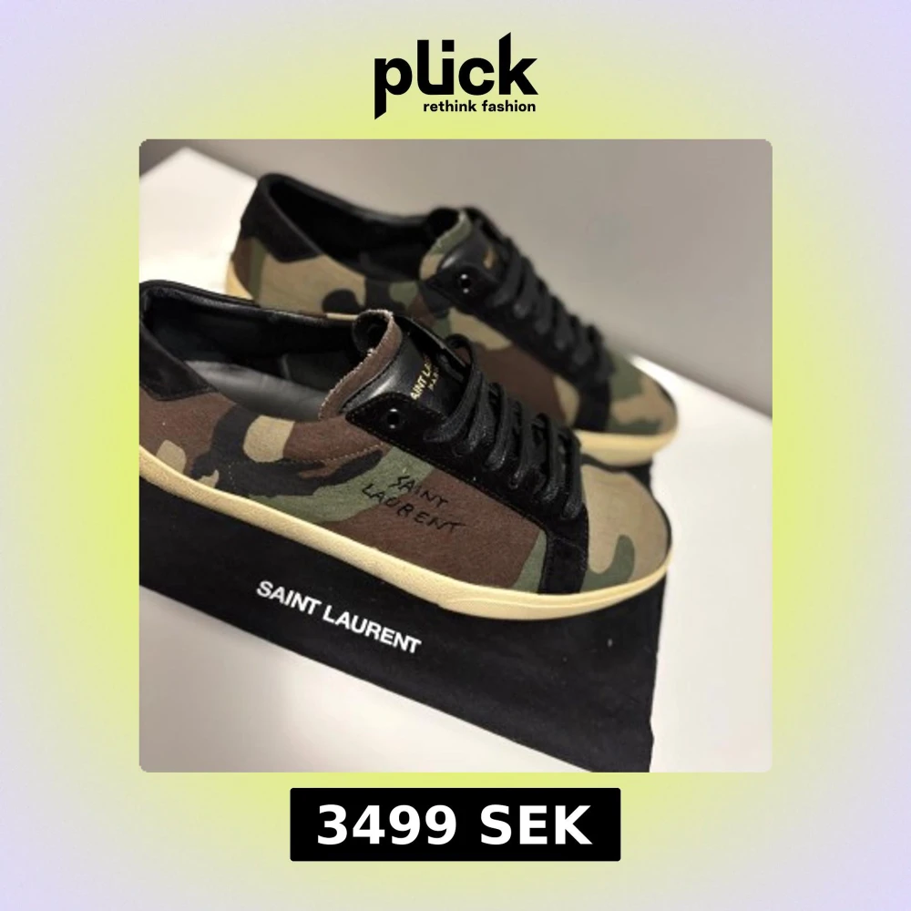 Tja! Säljer nu dessa tvär feta saint Laurent skor i en sällsynt camo colourway. Storlek 43 i väldigt fint skick (9/10) utan några defekter alls. Endast skorna medföljer, byten är intressant. Skriv vid minsta lilla fundering! Pris är ej hugget i stenen.