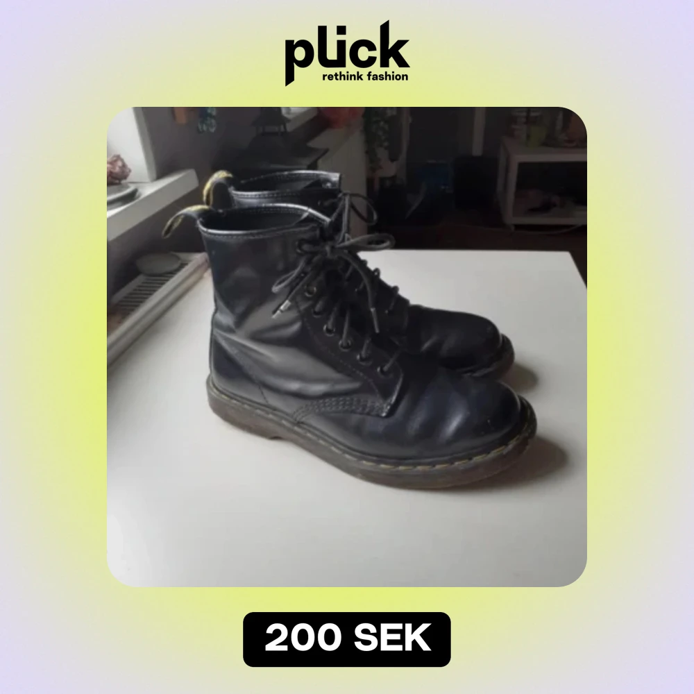 Dr Martens skor storlek 39 Mycket sliten som du kan se på bilden och det är därför jag säljer den så billigt! Skosnören på båda skorna sys ihop Var medveten om att vatten sipprar genom sprickorna i skorna
