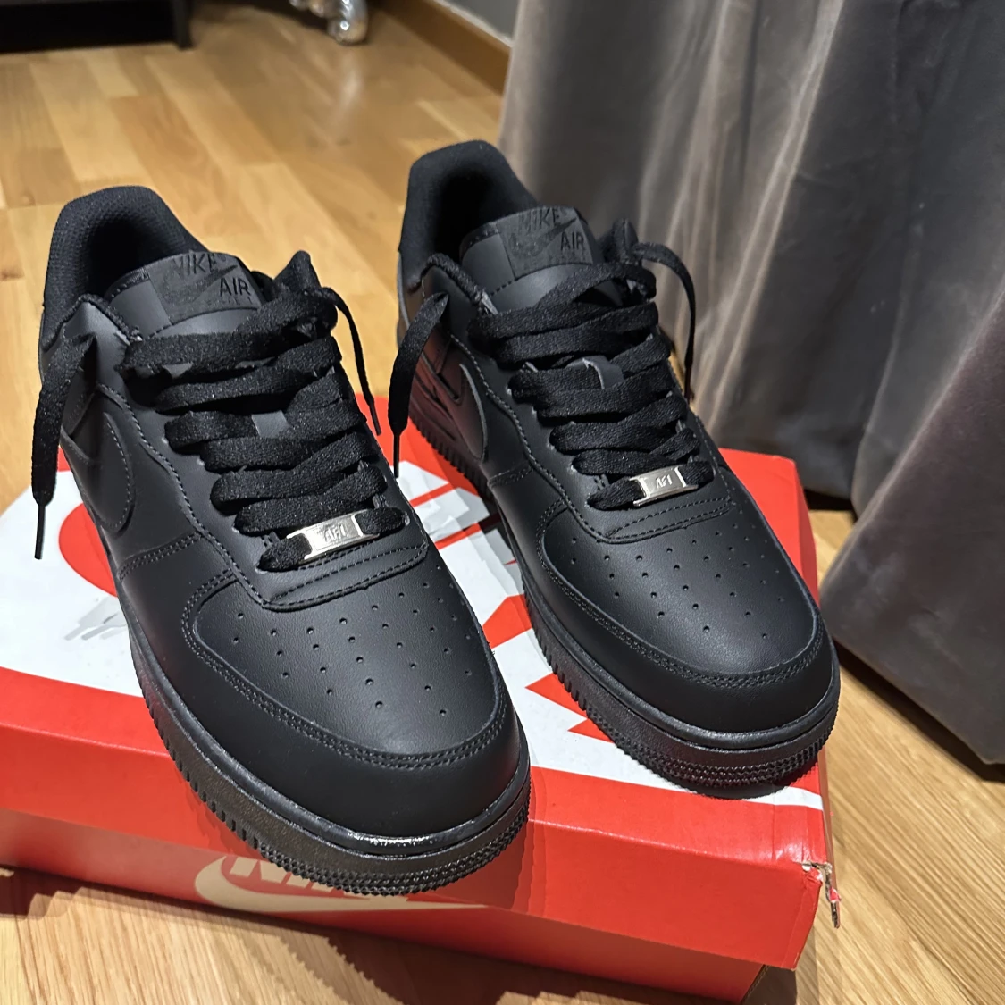 Ett par air forces som är nästan helt nya, använda en gång inomhus då det syns på undersidan av skorna annars är skorna helt nya. Tyvär finns det inte box.