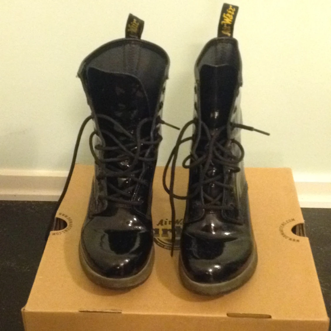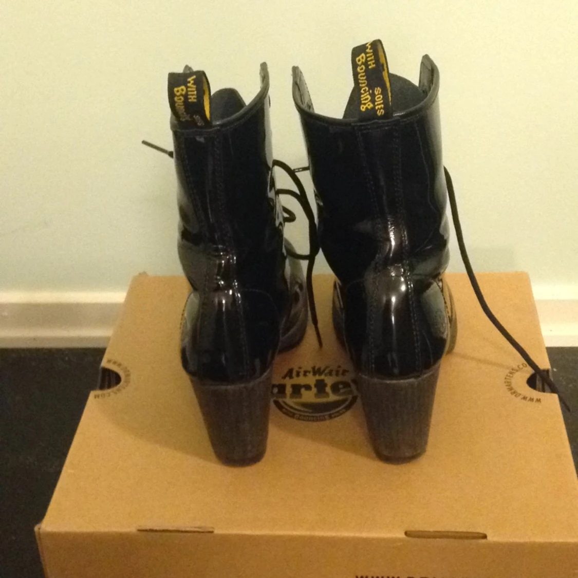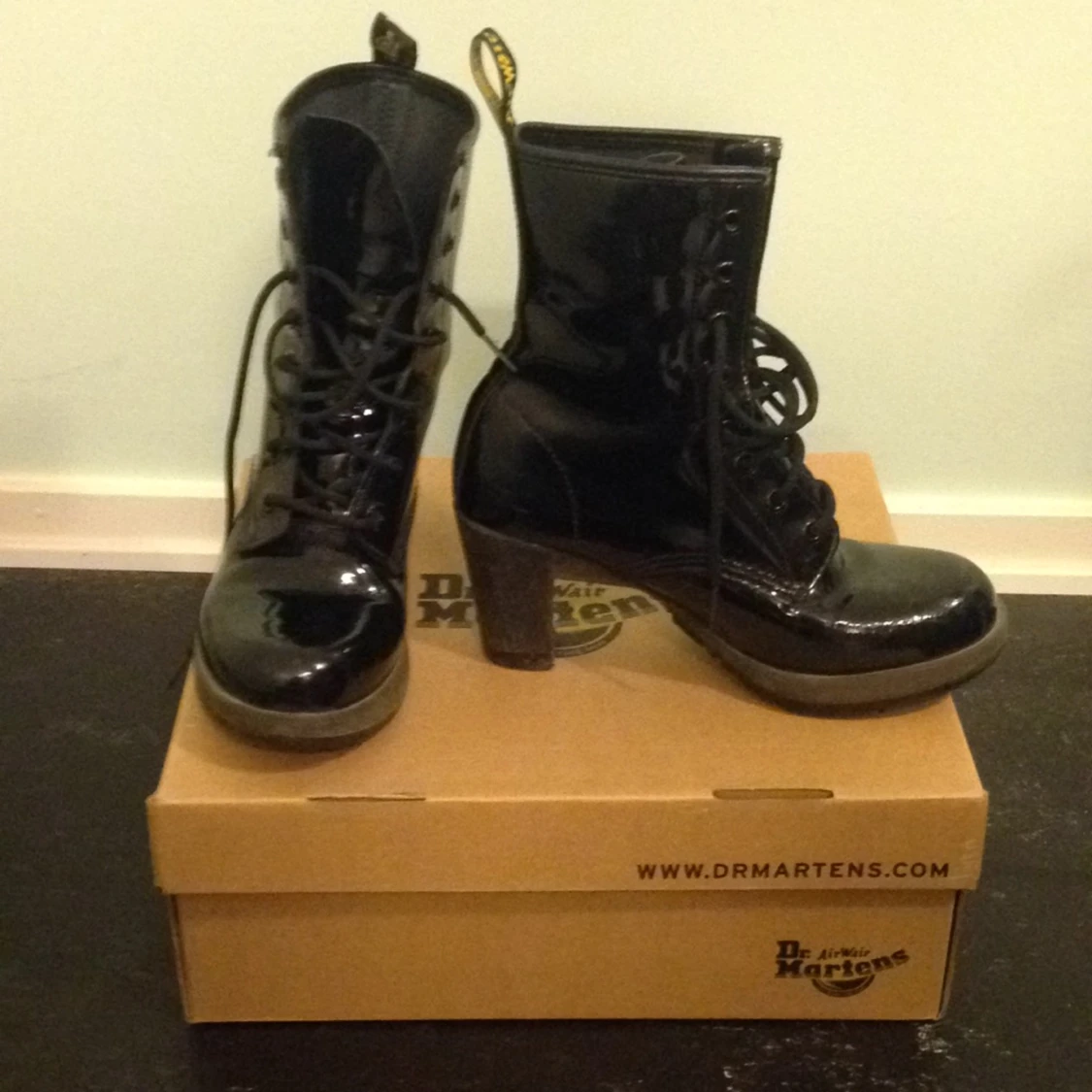 Dr Martens med hög klack, svart lack och snörning. Modell Darcie. Sparsamt använda.
