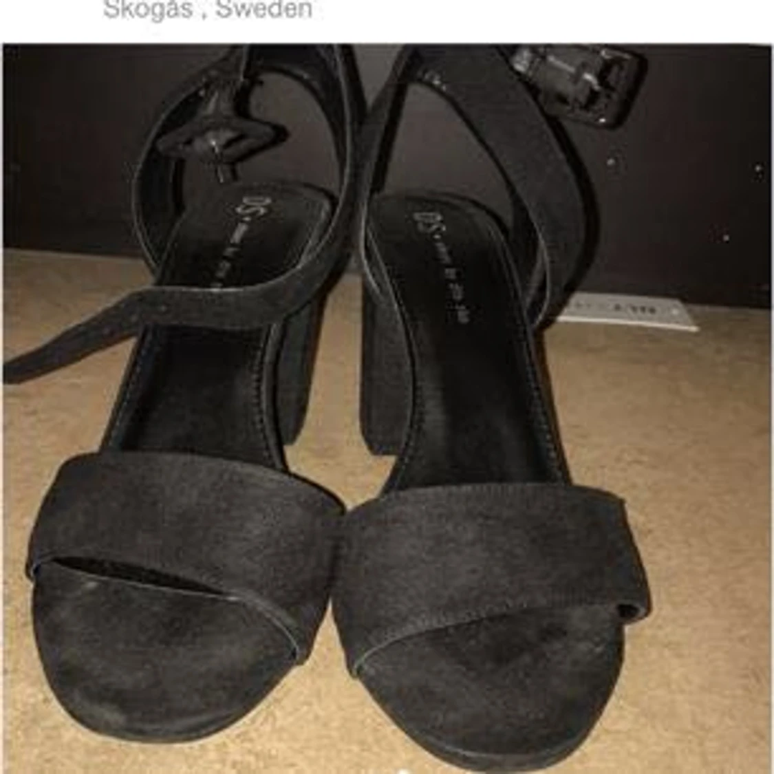 Svarta låga klackar från dinsko, använda 3 gånger. Väldigt Fint skick! Storlek 38 men passar 39 också Fraktar mot kostnad eller möts upp i Skogås/T-Centralen