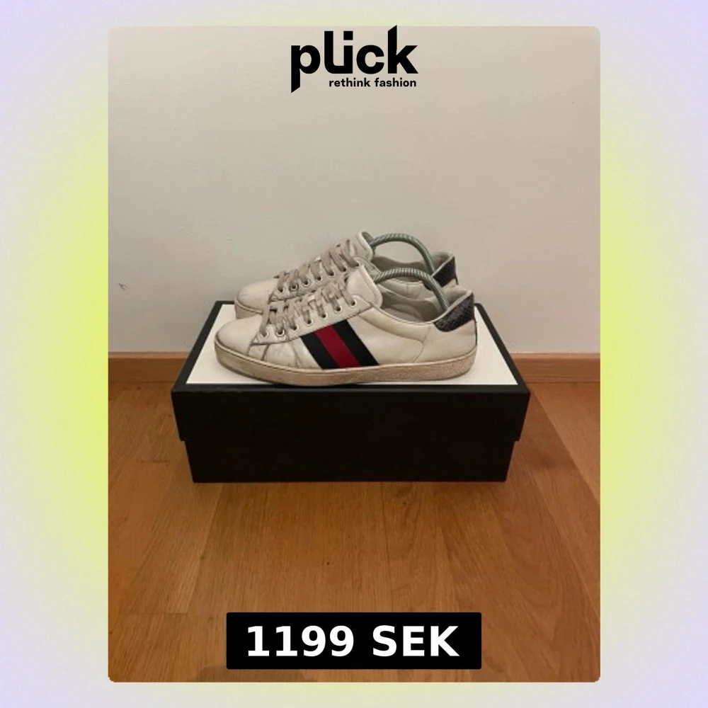 Ett par Gucci ace som är lite slitna men fortfarande sjukt snygga! Box medföljer. Priset är förhandlingsbart!