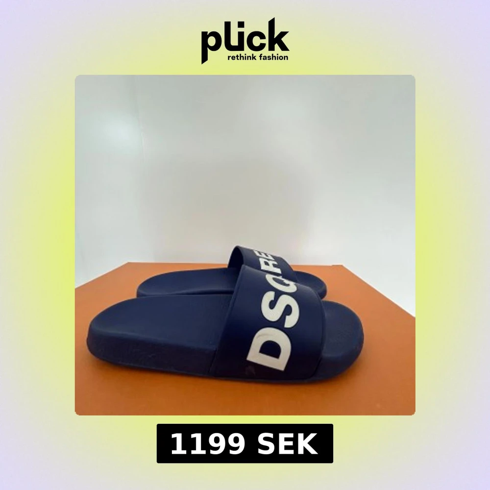 Säljer ett par mörkblå tofflor från märket Dsquared2 med vit logotyp över foten. Tofflorna har en klassisk slip-on design och platt sula, perfekta för stranden eller poolen. En tidlös accessoar för den modemedvetna. Priset är inte hugget i sten så skicka prisförslag✅Nypris ca 2000 kr. Skriv vid frågor eller funderingar i DM🍾