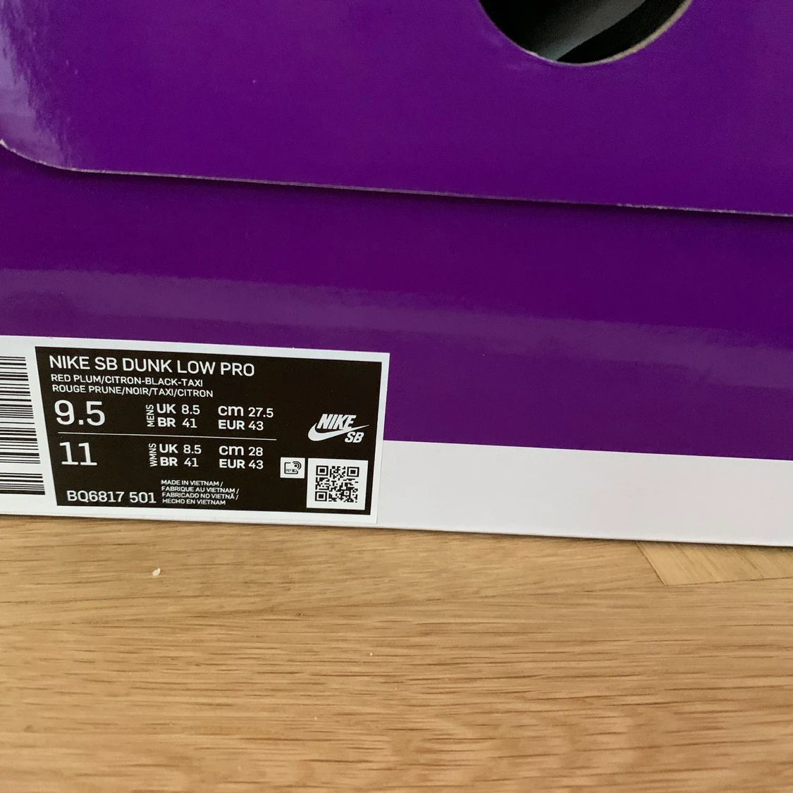 Dunk sb red plum direkt från SNKRS i strl 43. 1500kr. Endast uppackade för bild. Hämtas i Slottstaden ( Malmö) eller skickas spårbart. Köparen står för frakten. Kvitto finns fr Nike..