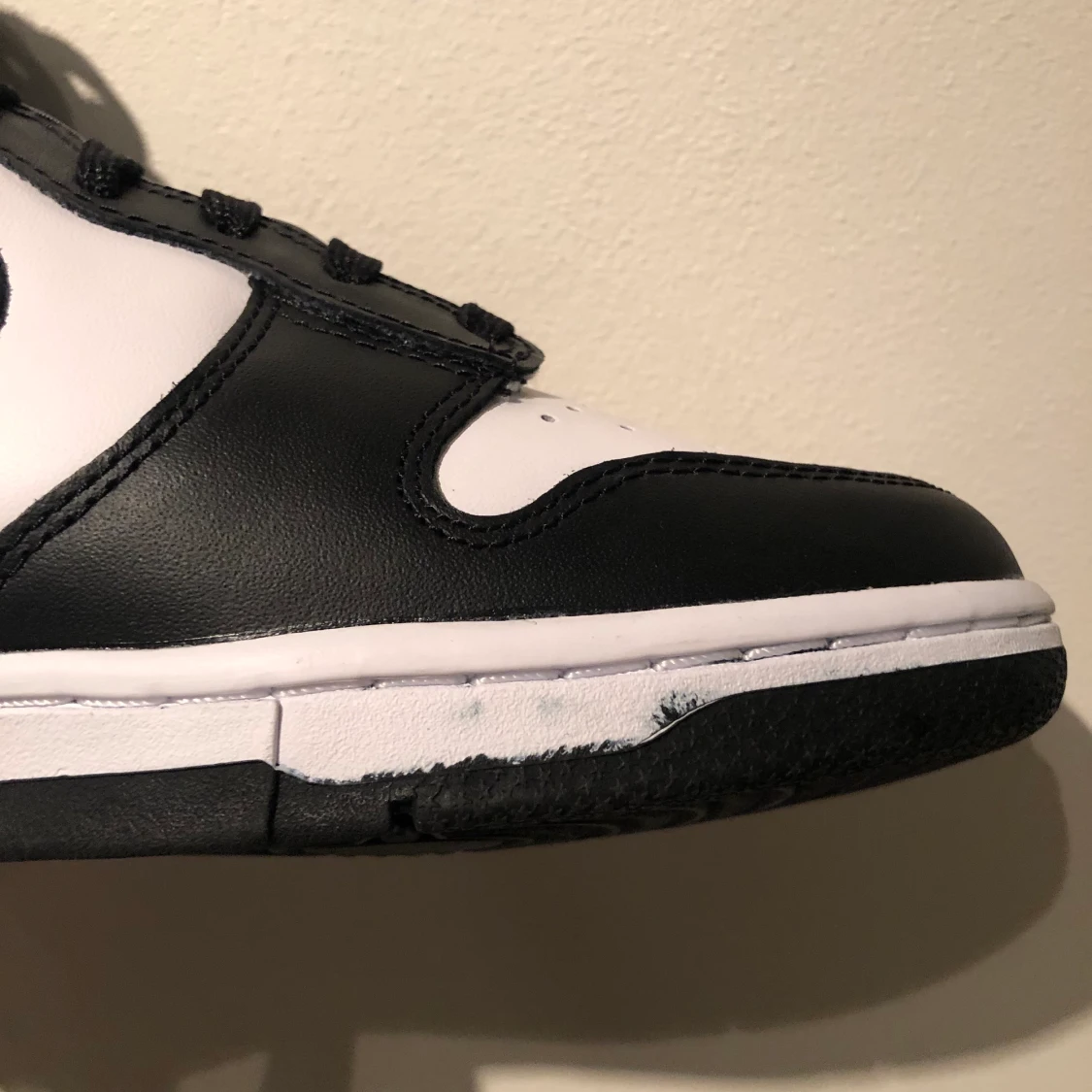 Dunk high panda (black white), helt nya och kvitto finns från Zalando. Skickar skorna samma dag om beställningen sker innan 20:00. Skorna har defekt i form av svart fläck på sulan, se bild. Därav är priset billigare då lägsta pris på restocks 2000kr