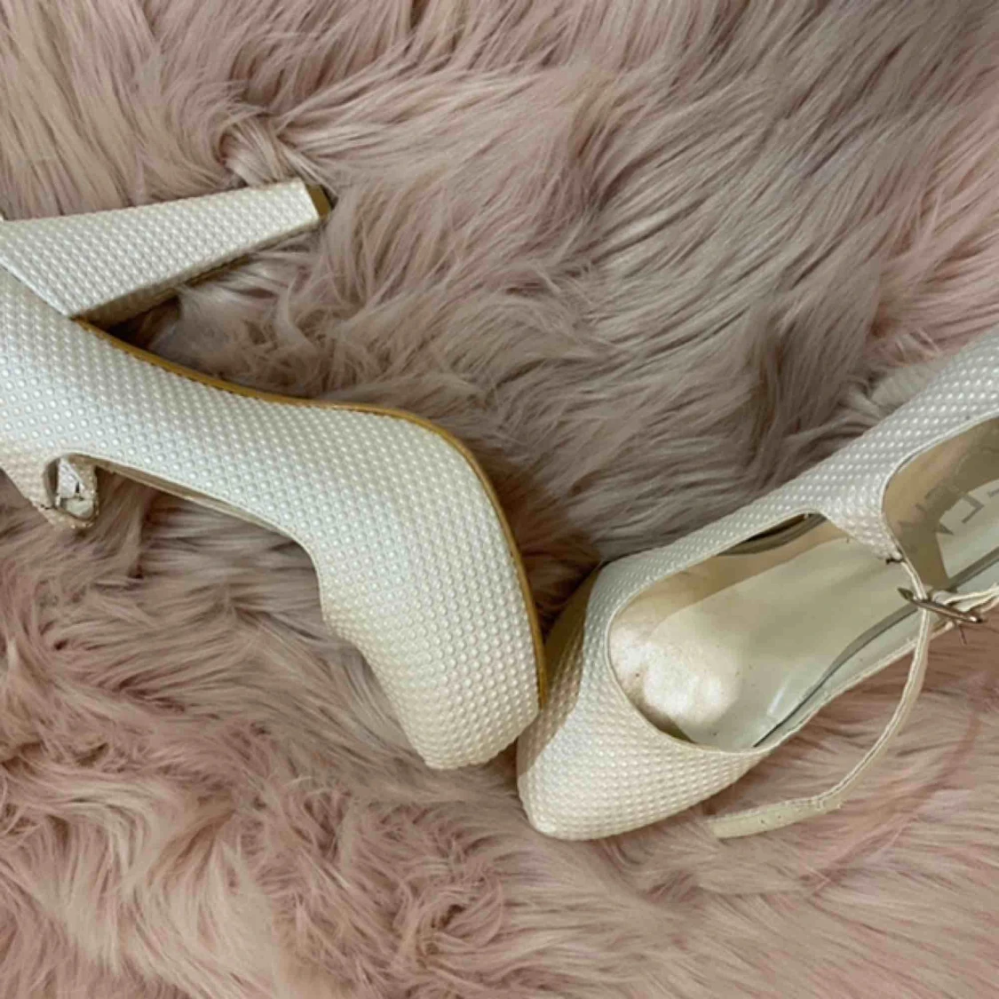 Vita höga klackar. Väl behandlat och endast använd några få antal gånger inomhus. Små prickar på. Frakt förekommer / mötas upp.
