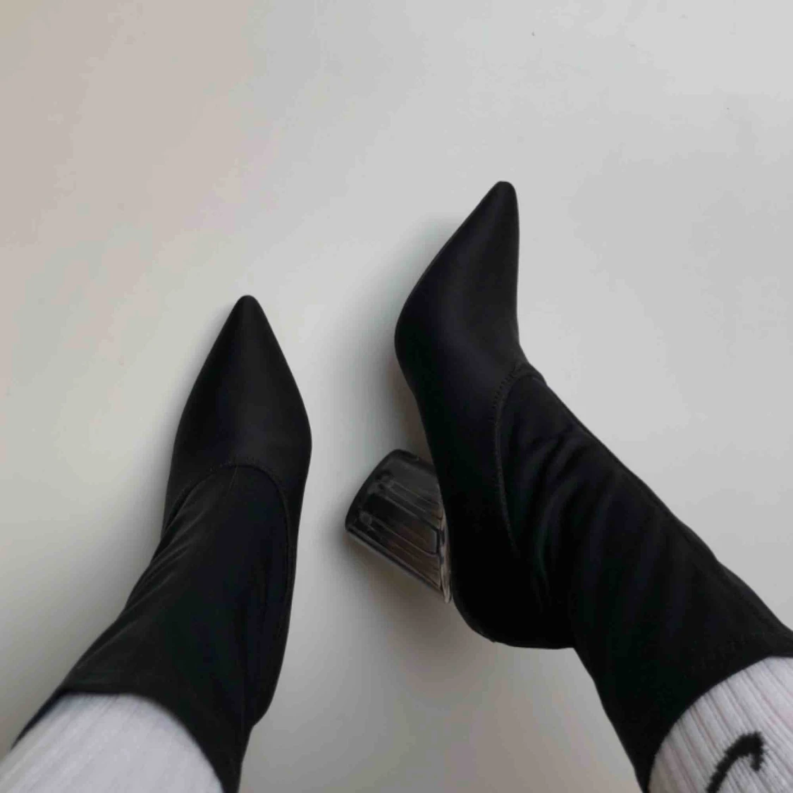 Sock boots med svarta perspex heels storlek 40 från ego.co.uk. Knappt använda. Klack ca 10,5 cm. Kan skickas eller mötas upp i Stockholm