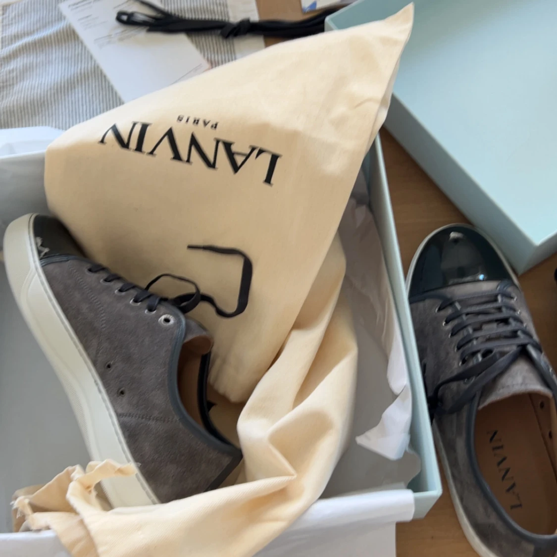 Säljer nu ett par fräscha skor från lanvins. Skorna är sparsamt slitna Uk 7 storlek 42. Jag själv gillar skorna väldigt mycket de är populära och stiliga till de mesta. Allt og följs med - 2 dustbags, extra skosnöre och box. Hör av er vid minsta fundering!