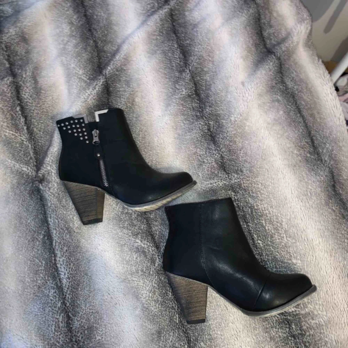 Svarta högklackade skor med guldetaljer