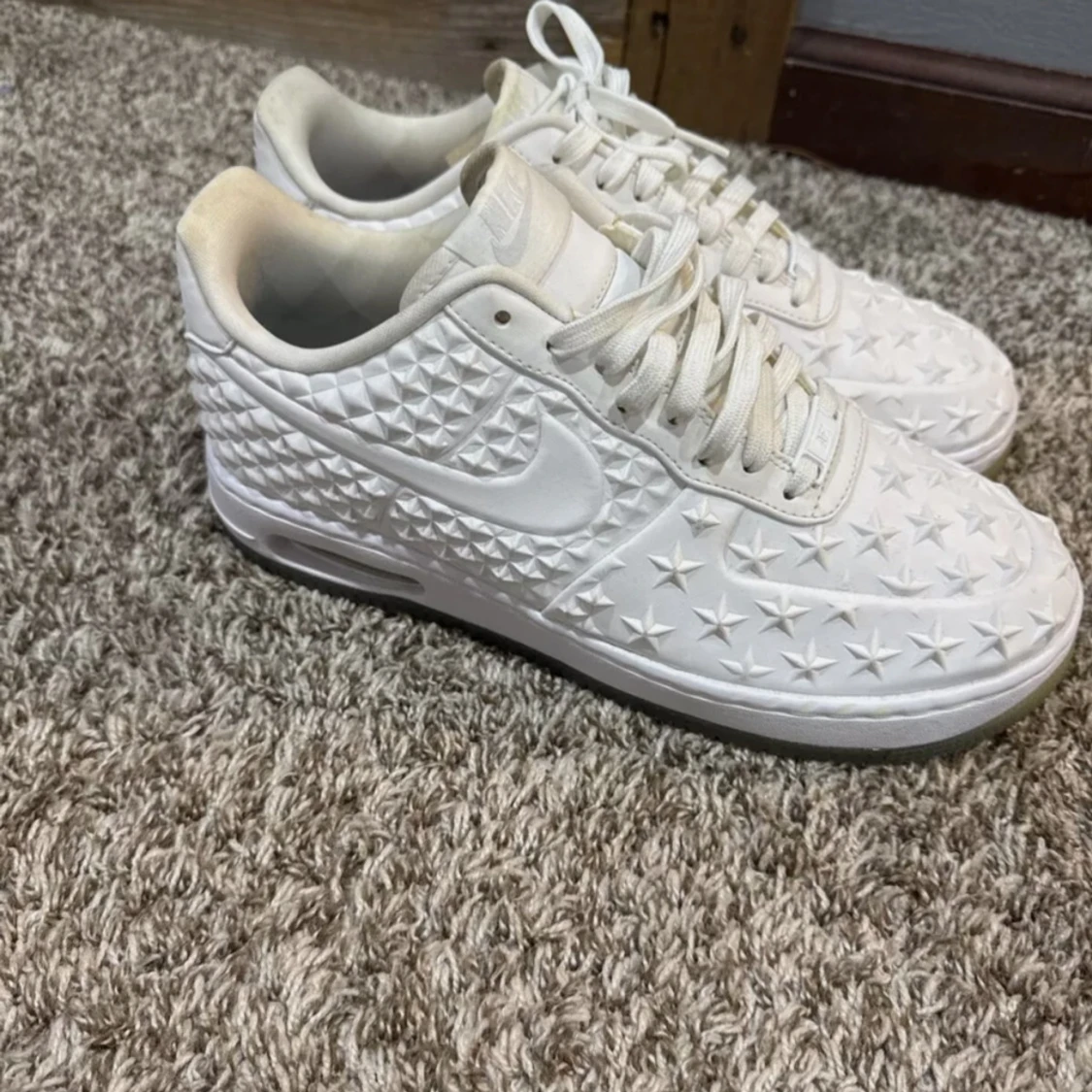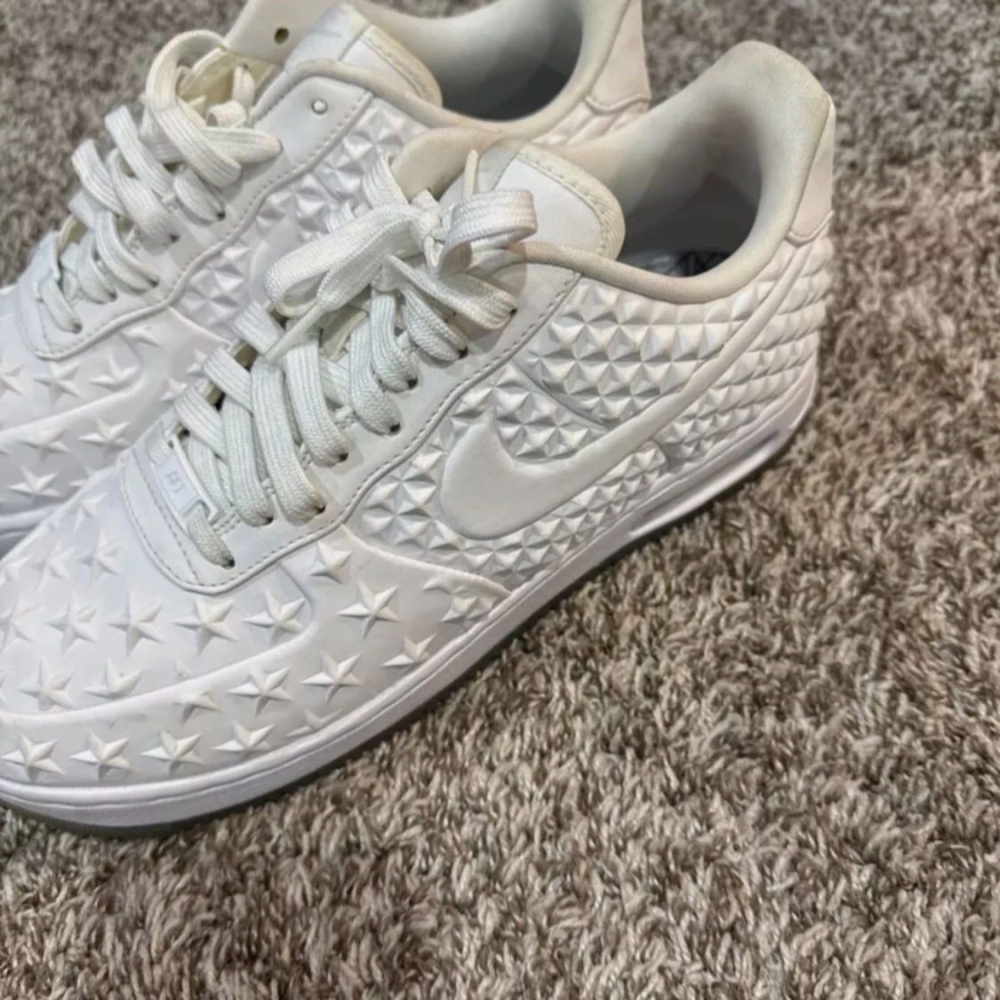 Snygga vita sneakers från Nike med stjärnmönster och snörning. Perfekta för en stilren look. Kan bytas mot förslag