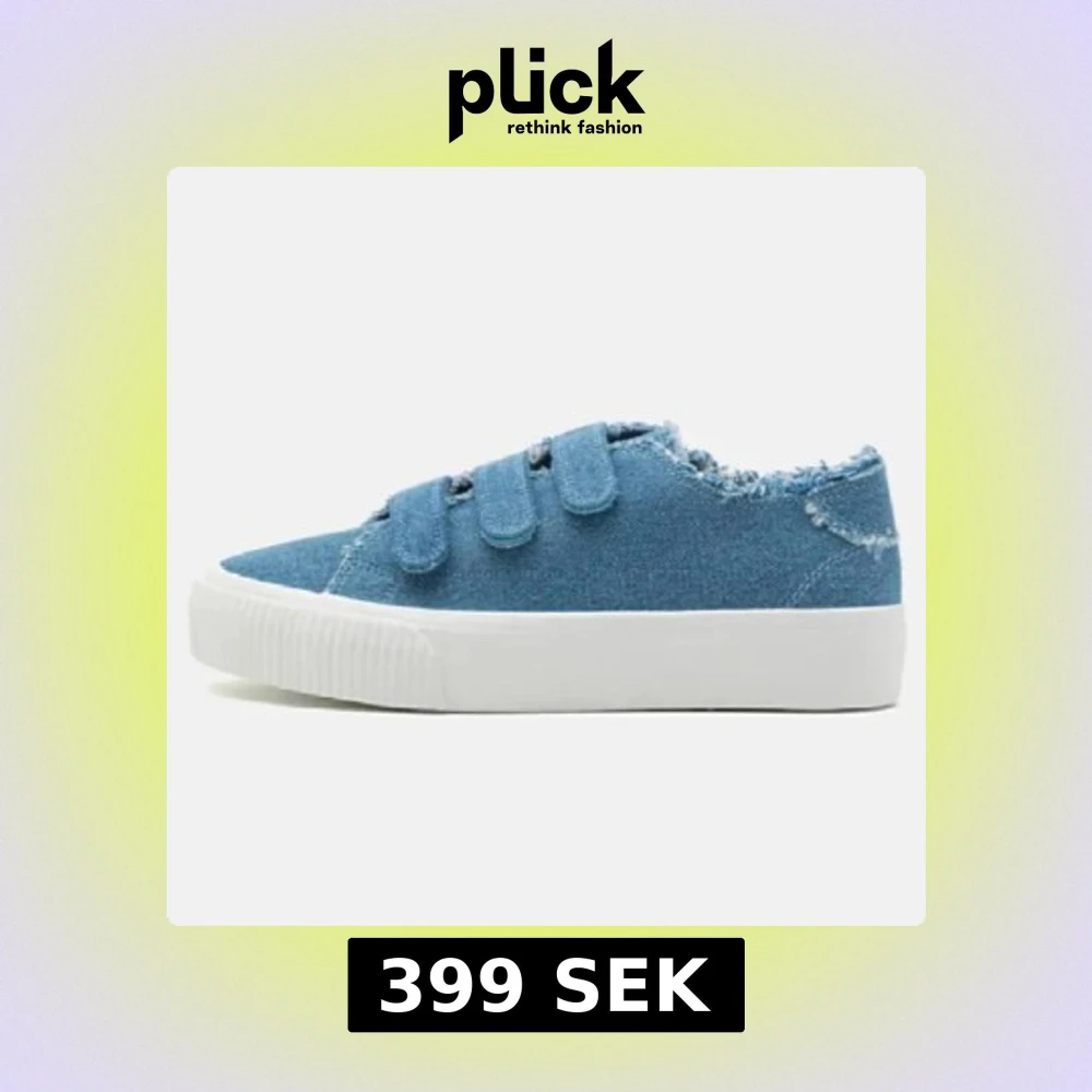 Snygga sneakers i ljusblå denim från Even&Odd med coola fransade kanter och tre breda kardborreband. Skorna har en vit, platt sula och rund tå. Perfekta för dig som gillar en avslappnad och trendig stil med jeanskänsla.