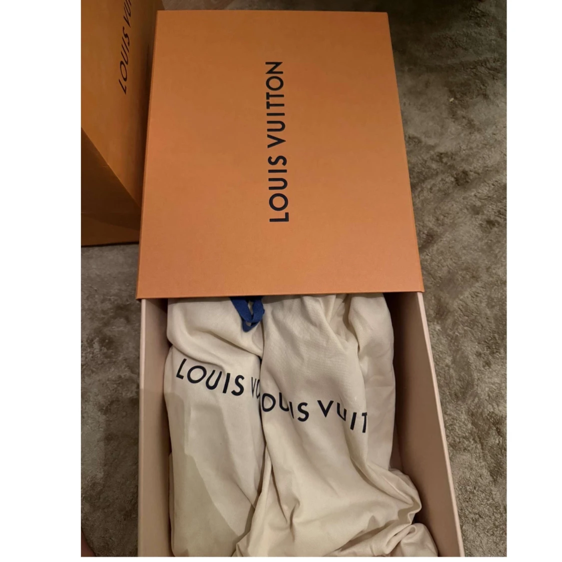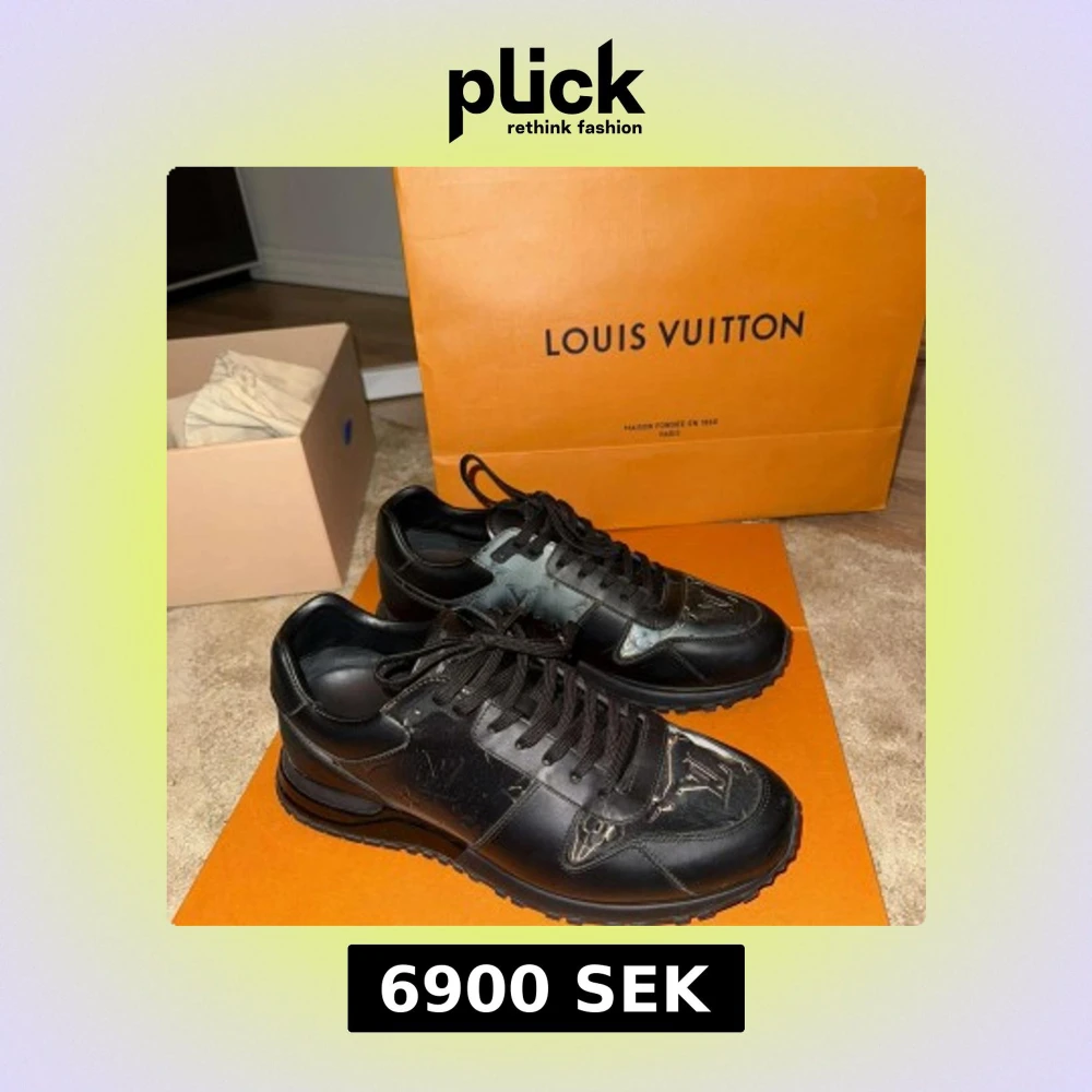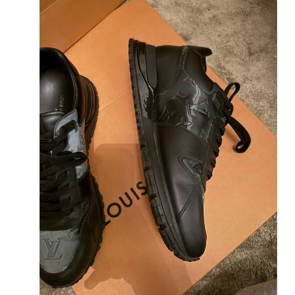 Snygga svarta sneakers från Louis Vuitton i skinn med klassiskt LV-monogram i relief och tryck på sidor och tå. Skorna har svarta snören, platt sula och rund tå. Lyxig och stilren design som sticker ut med diskreta detaljer och exklusiv känsla. Köpta i butik i Stockholm, kvitto,box och påse kommer med! Nypris-10500