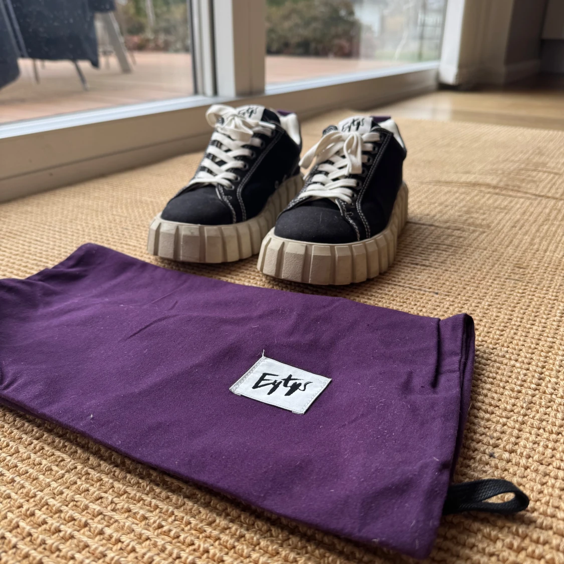 Snygga svarta sneakers från Eytys med vit sula och snörning.