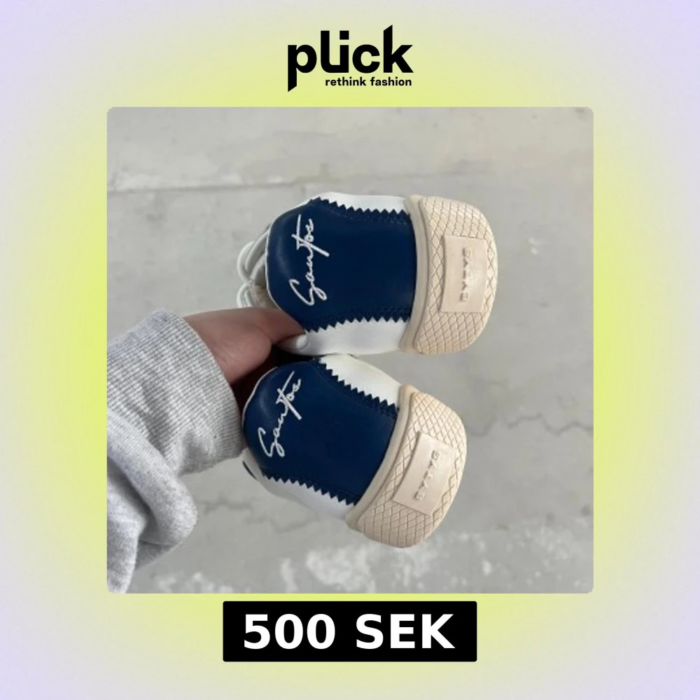 Säljer ett par snygga sneakers från Eytys i vitt och blått med signaturdetalj på hälen. Dom är helt oanvända. Säljer billigt har för mycket skor