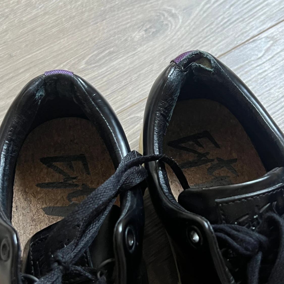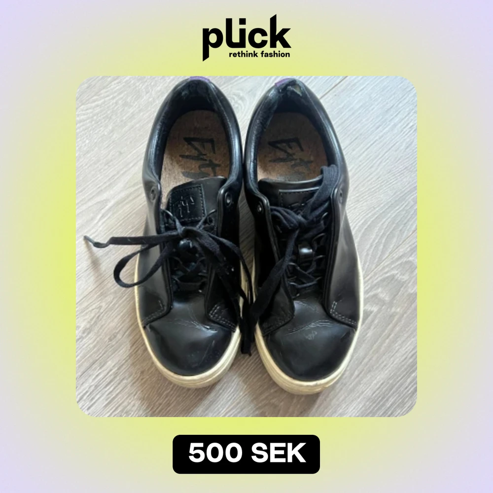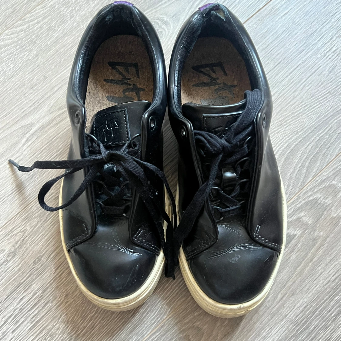 eytys doja i läder. använt skick, slitna bak i hälen men fortfarande fullt dugliga. obs! ena skosnöret har gått sönder och därför har dom olika snören, men går att köpa nya hos eytys om det är något som stör💐