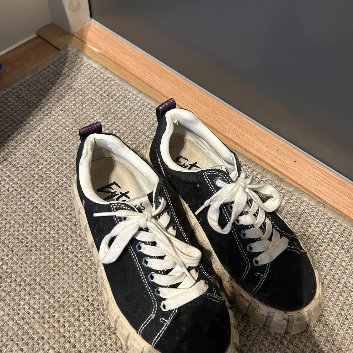 Snygga skor från eytys som nu är till salu, anledningen till att de är lite smutsiga är för att jag va ”smart” och gick på promenad med dom när det regnade. Det går att få bort i tvätt. Annars har de varit använda väldigt fåtal gånger. Nypris 1900. Vid snabb affär kan priset absolut diskuteras