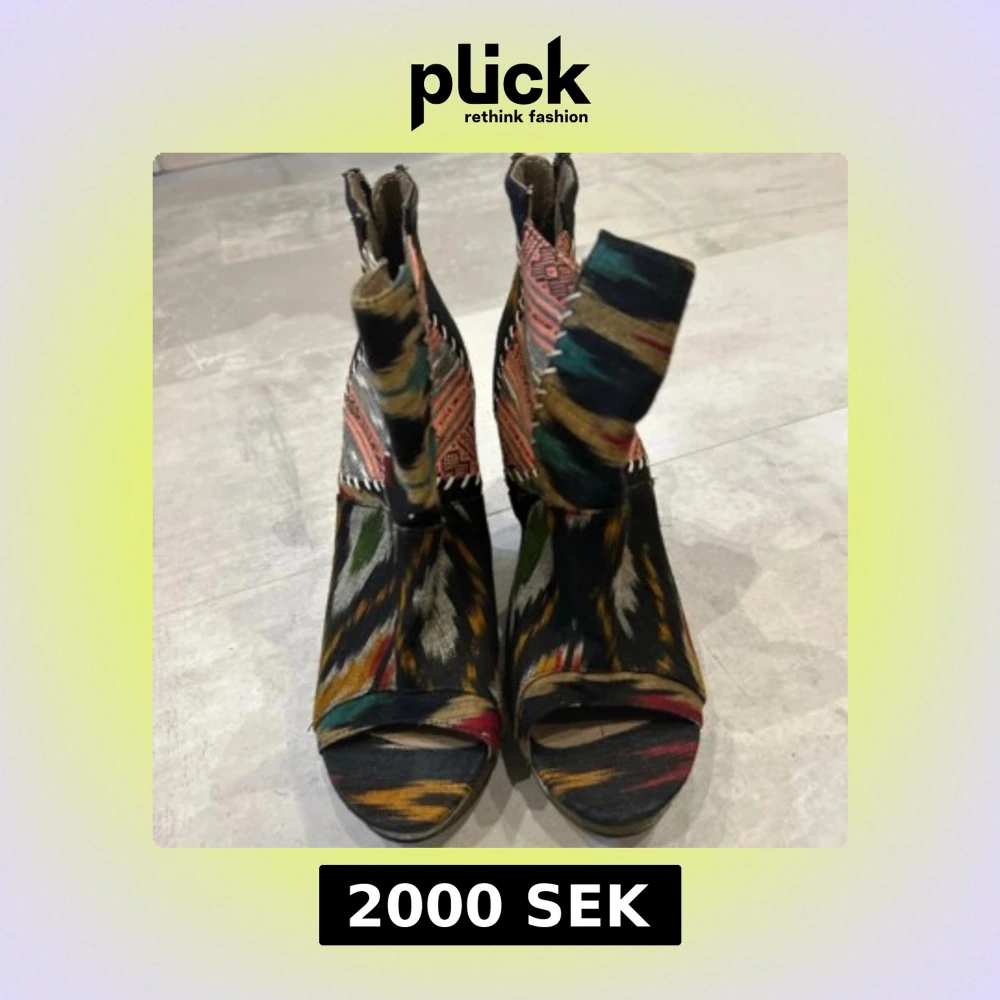 Unika kilklackar från ALDO med färgstarkt mönster i svart, grön, orange och beige. Skorna har öppen tå, dragkedja bak och plattformsula. Perfekta för dig som vill sticka ut med din stil.💕 Köpte dom i början av 2024 och har använt dom ca 3-4 gånger på olika små fester 🎉 Köpe dom i Kanada för ca 4500kr 🥲 och säljer dom nu för 2500kr!! Skriv till mig om du har ett bra bud så kan vi snacka om det 💛💛
