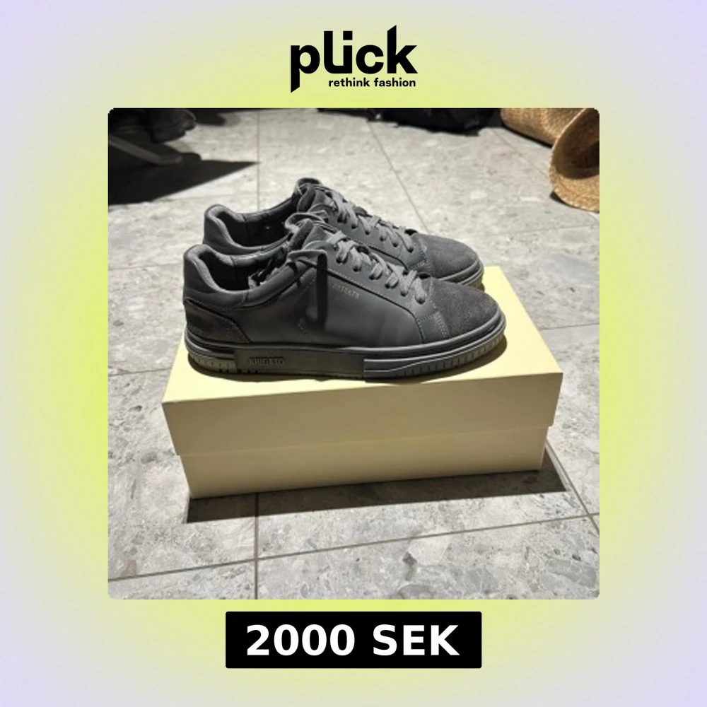 Snygga grå sneakers från Axel Arigato med stilren design. Skorna har snörning och en kombination av skinn och mocka i materialet. Perfekta för en avslappnad och trendig look.