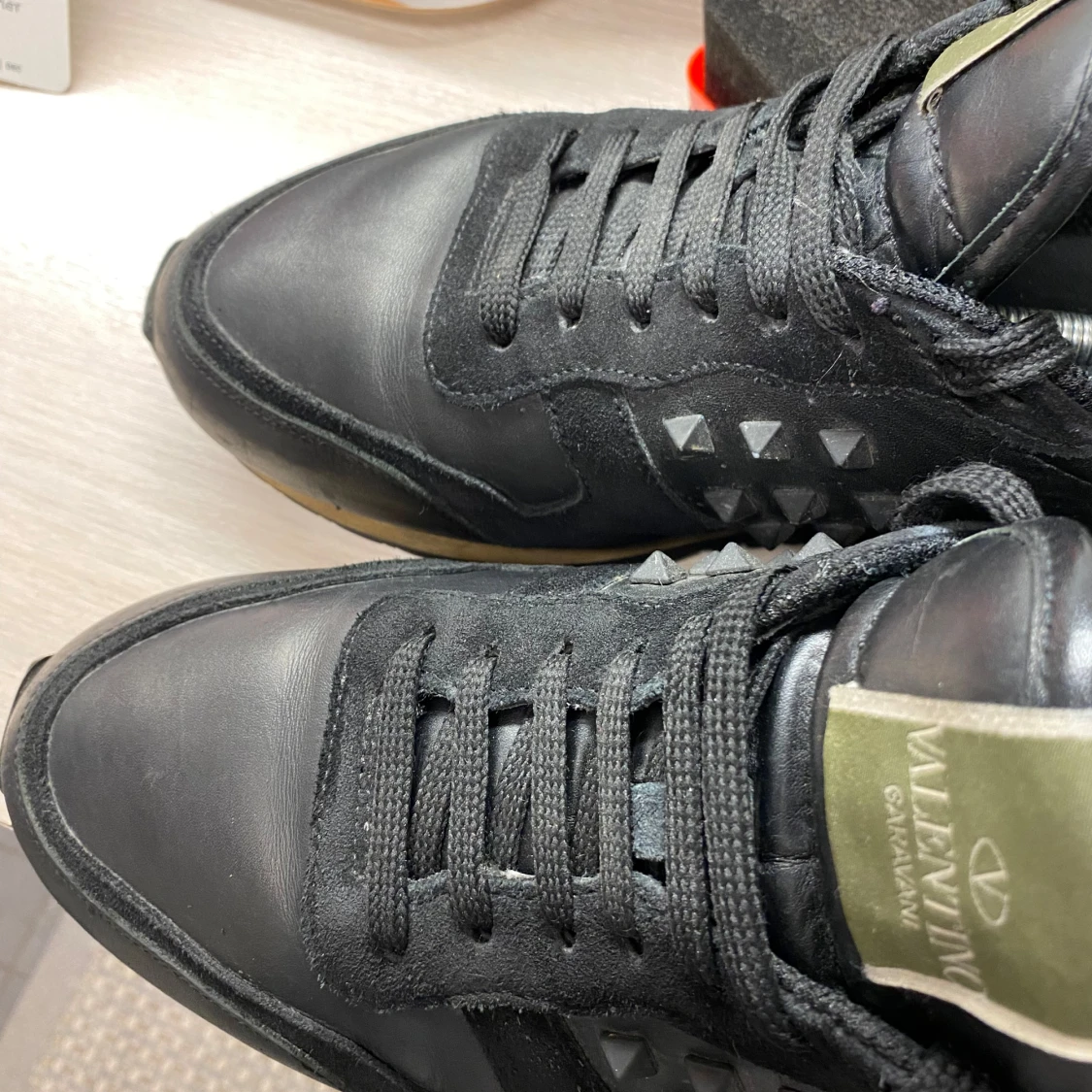 Hej! Säljer mina valentino rockrunners som är riktigt snygga! De är i väldigt bra skick men de har tappat en nit på högersidan och har ett mini hål vid hälen på höger skon men det känns inte. Nitarna sitter riktigt bra och de har aldrig ramlat av för mig och det var en nit tappad när jag fick de. Annars är skorna i riktigt bra skick och äktighetsbevis finns! Inget og ingår.Hör av er vid frågor! Skorna är i storlek 41 men passar cirka 42,5! Nypris= cirka 8500 Mitt pris= 1775!!! Helt sinnessjukt