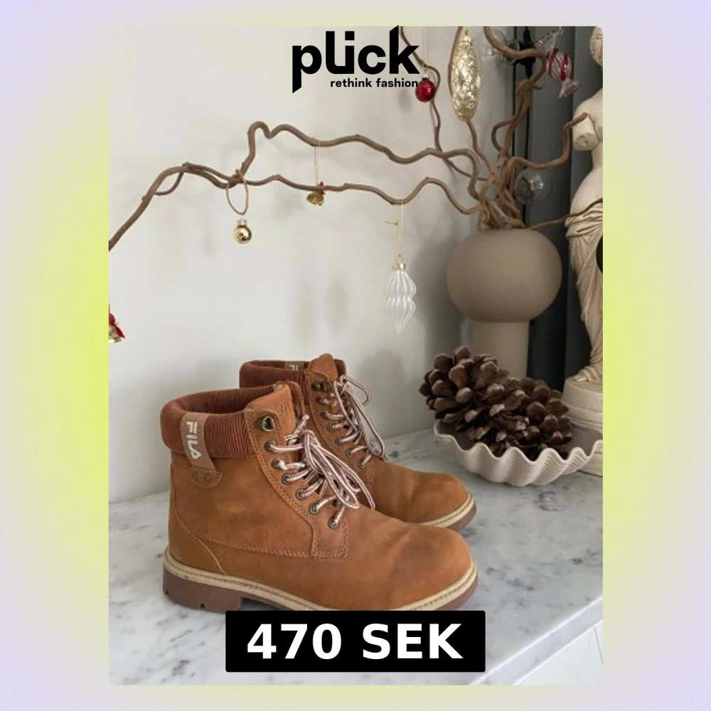 Säljer ett par Fila kängor i storlek 38 – dam, i mycket fint skick och sparsamt använda. Snygga bruna kängor med fina detaljer som gör dem lätta att matcha till både vardag och mer uppklädda tillfällen. Stadiga, bekväma och perfekta för dig som vill ha både stil och funktion i samma sko. Redo för många nya steg framåt. Pris: 500 kr Notera: Snörena är lite nötta på några ställen, inget som syns på håll – se sista bilden. (Sökord: Fila kängor stl 38 dam bruna skor boots)
