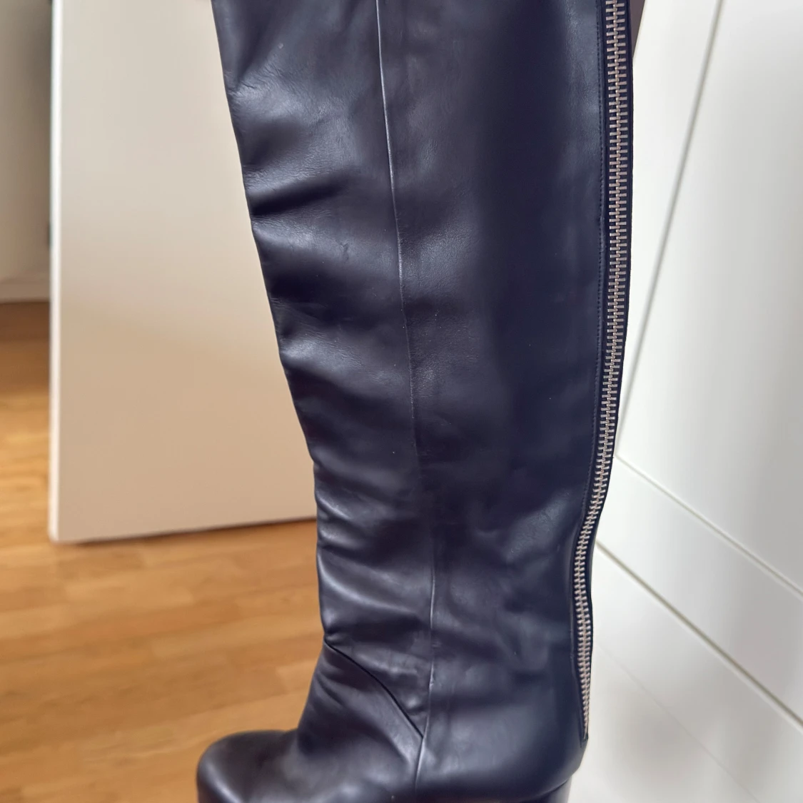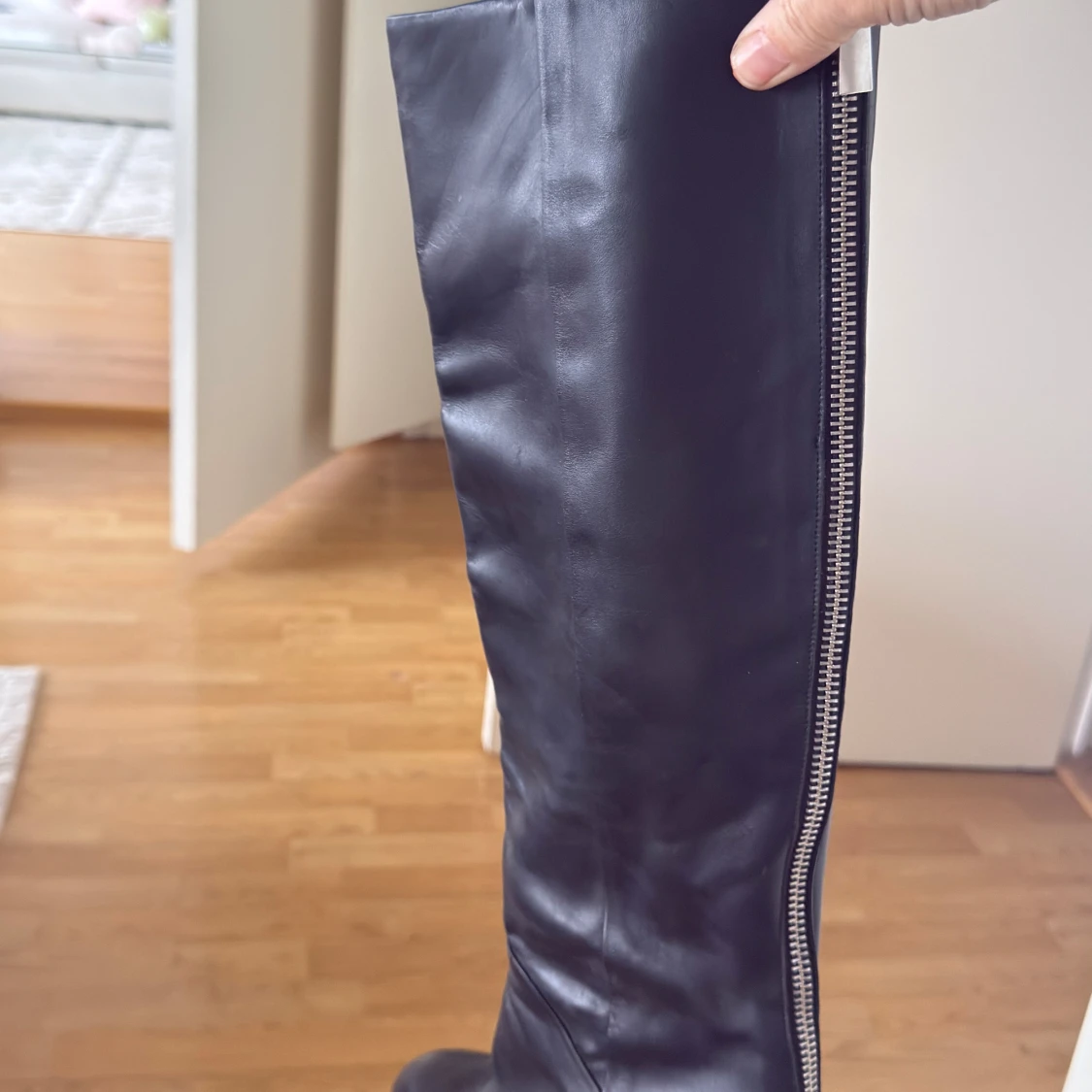 Snygga svarta stövlar från Filippa K i äkta skinn med rund tå och låg klack. Stövlarna har en rejäl dragkedja längs hela skaftet som ger en cool detalj. Perfekt till höst och vinter för en stilren look.