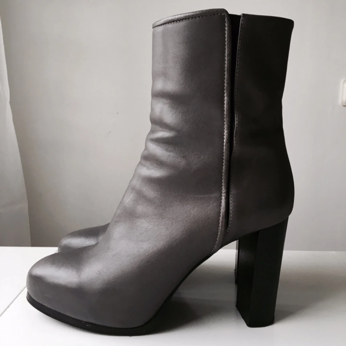 Ankelboots i grått skinn från Filippa K. Köptes för 3400 kr. Har knappt använt dem och ser därför ut som nya. Str 38 men är lite stor i storleken.