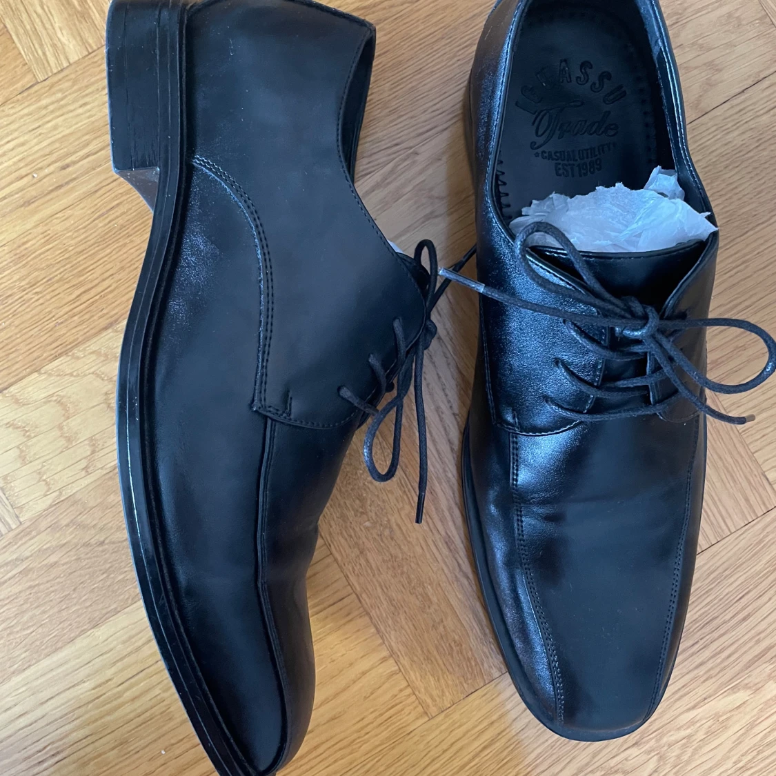 Finskor skor som är nästan helt nya, bara använda 1 gång. Tredje bilden är när min bror hade på sig de och hur de ungefär ser ut på. Skriv om ni har frågor!