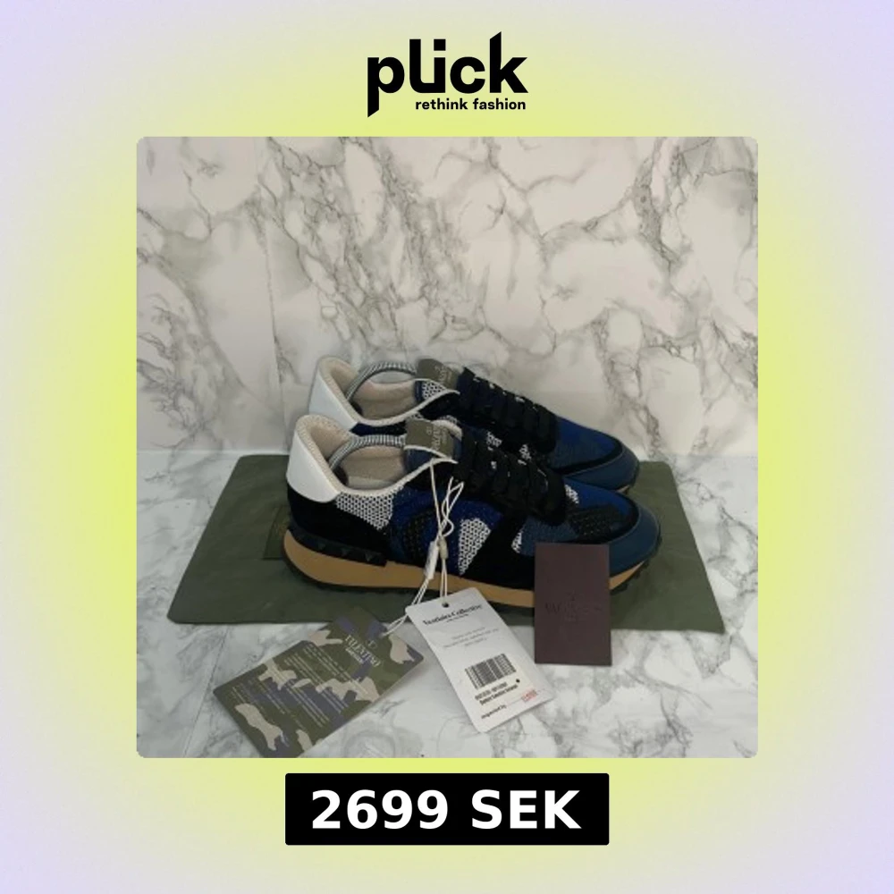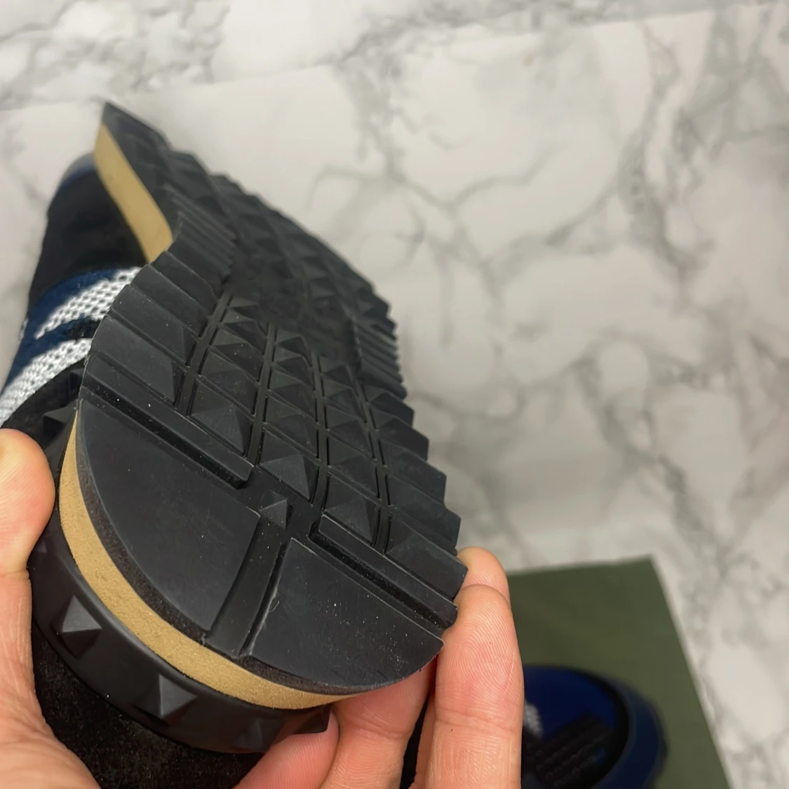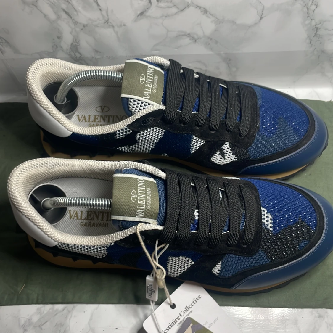 Snygga Valentino Rockrunner sneakers i en mix av blått och svart med vita detaljer. Skorna har en robust sula och klassisk snörning. Perfekta för en stilren look.