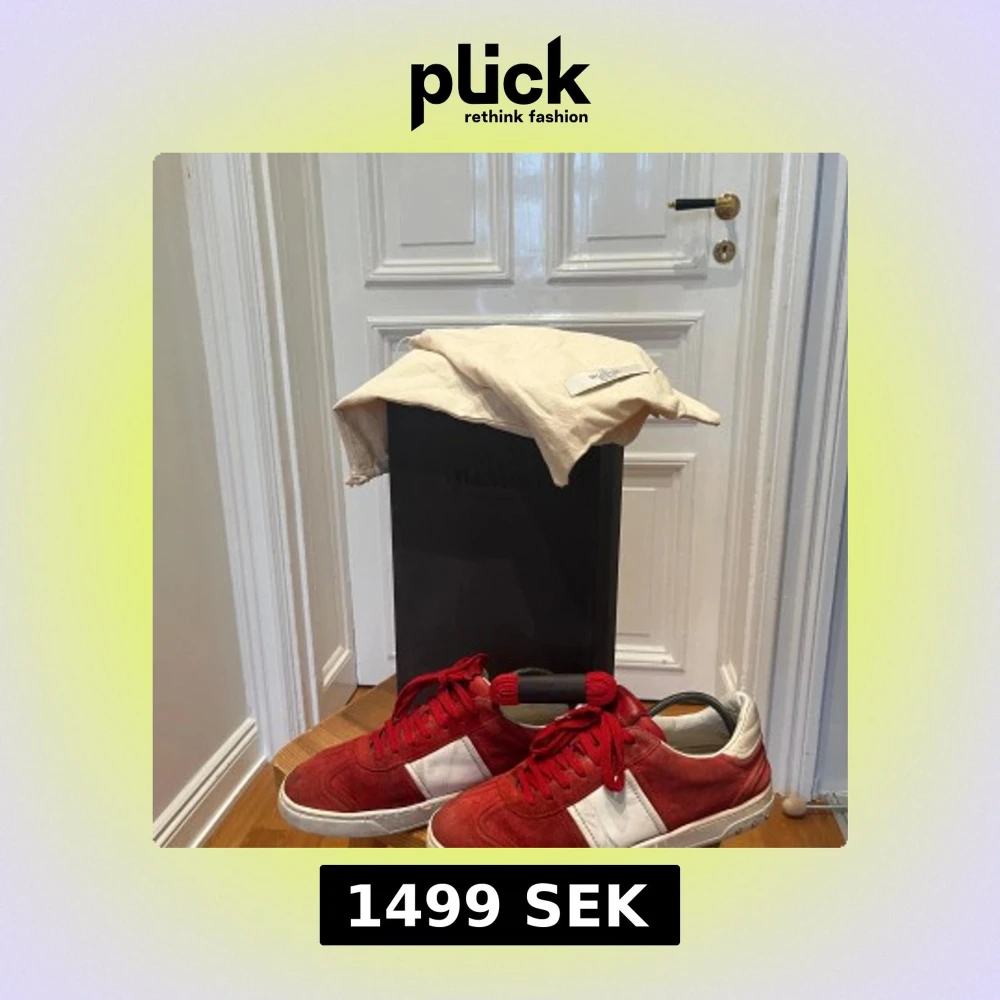 Jag säljer dessa sköna valentino flycrews i röd färg. Relativt gott skick men ändå tecken på användning så som mindre skråmor och ett par saknade nitar då nitar tyvärr tenderar att försvinna förhållandevis snabbt. Original låda inkluderas samt 2 dustbags med valentino markering och ett par extra fräscha oanvända orginalsnören. Modellen är relativt sällsynt pga den minskade produktionen av modellen och nypris brukar därför ligga mellan 4999-6500 beroende på storlek. Pris kan diskuteras så fråga!