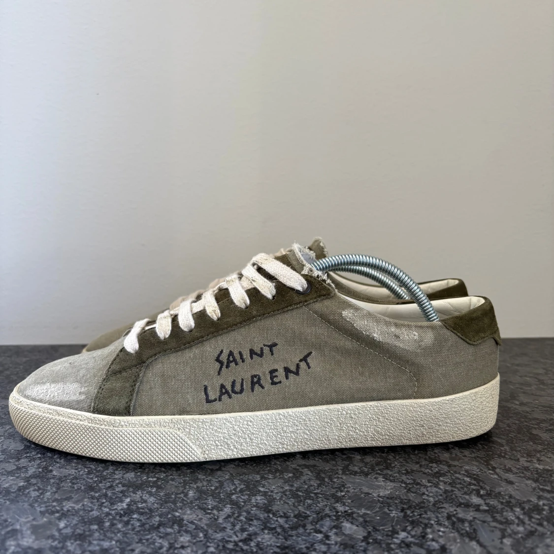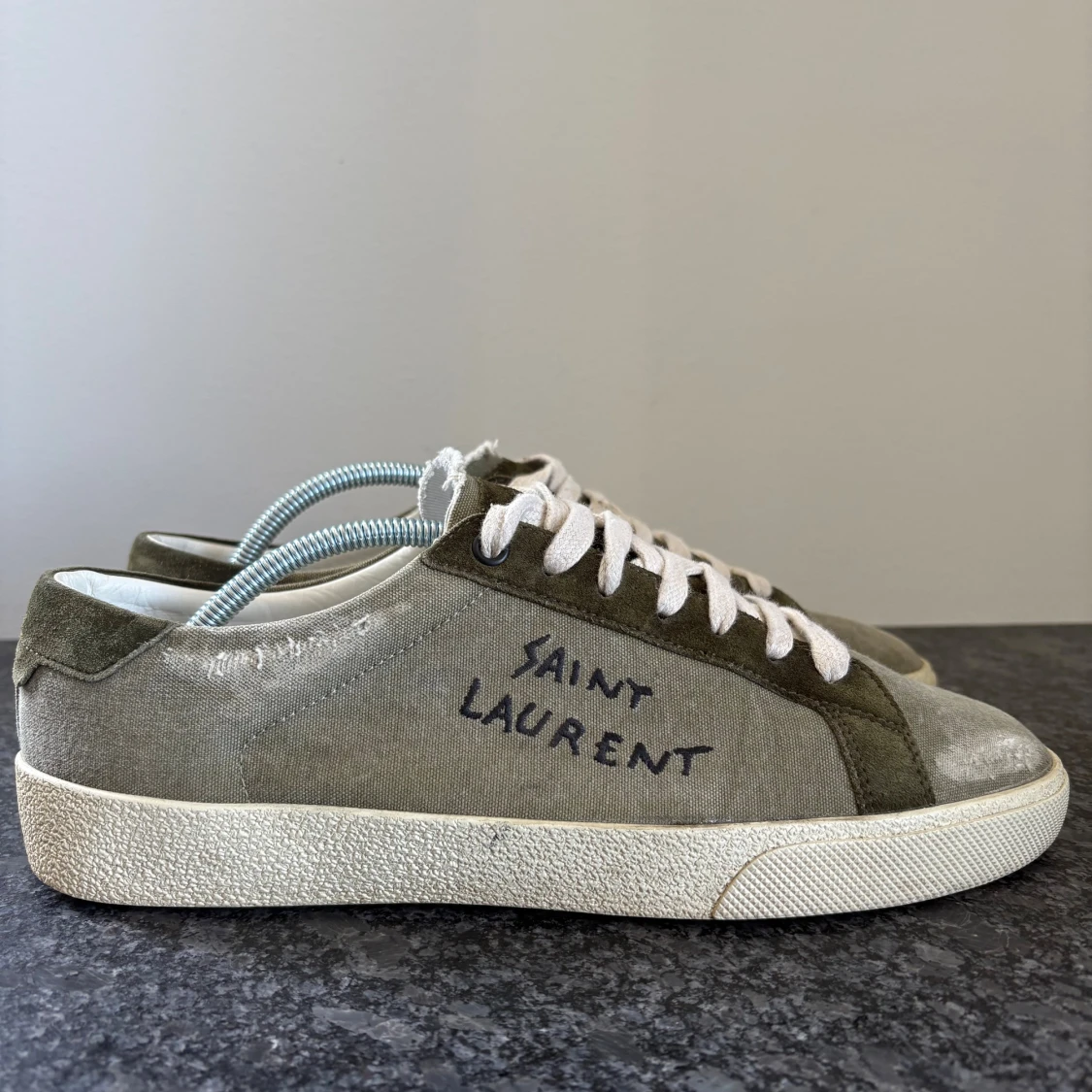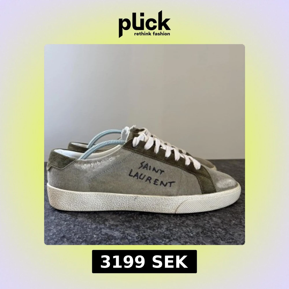 Saint Laurent skor i modellen Sl/06 Court Classic. Säljer pga för stora. 42 men sitter som 43 beroende på hur breda fötter man har. Sulanr lös på vänster foten, men en skomakare eller du kan lätt limma ihop. Annars har de bra skick. Pris kan diskuteras vid snabba affär. Nypris 8000. Väldigt sällsynta och eftertraktade.