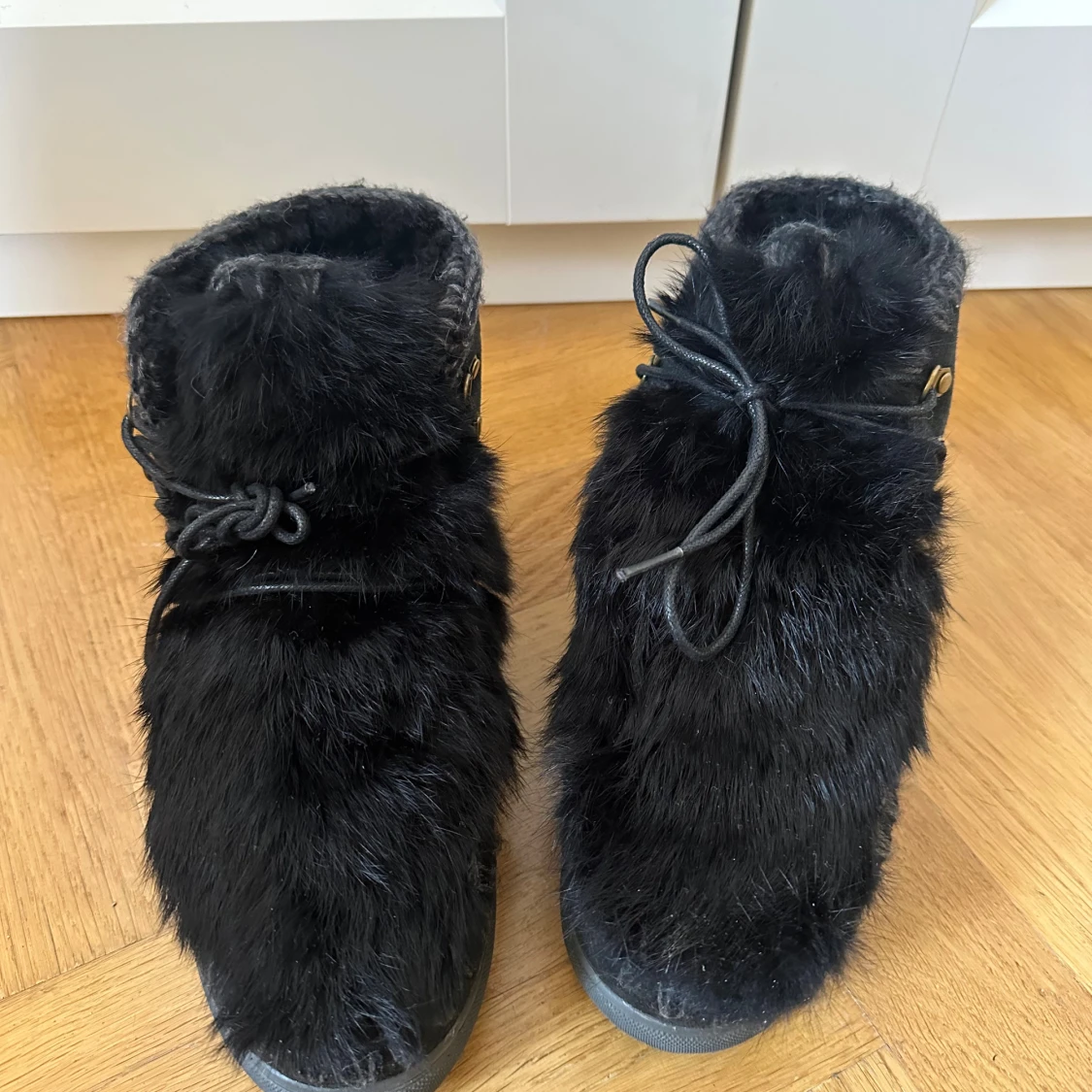 Mou skor nästintill oanvända med kanin päls på. Storlek 37