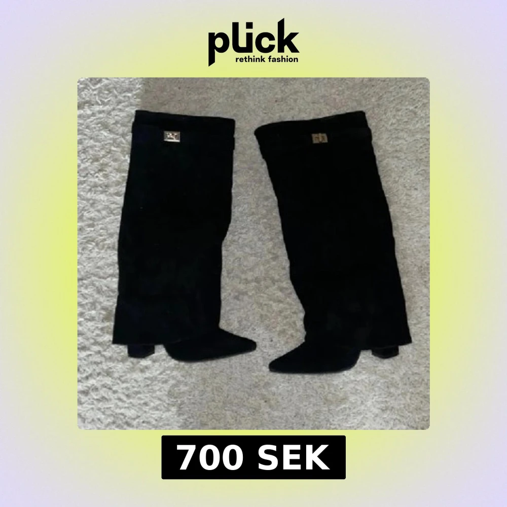 Snygga svarta stövlar i mocka med spetsig tå och dekorativt spänne upptill💞Har en liten defekt på sulan inuti men som inte märks av! Kan gå ner lite vid snabb affär💞