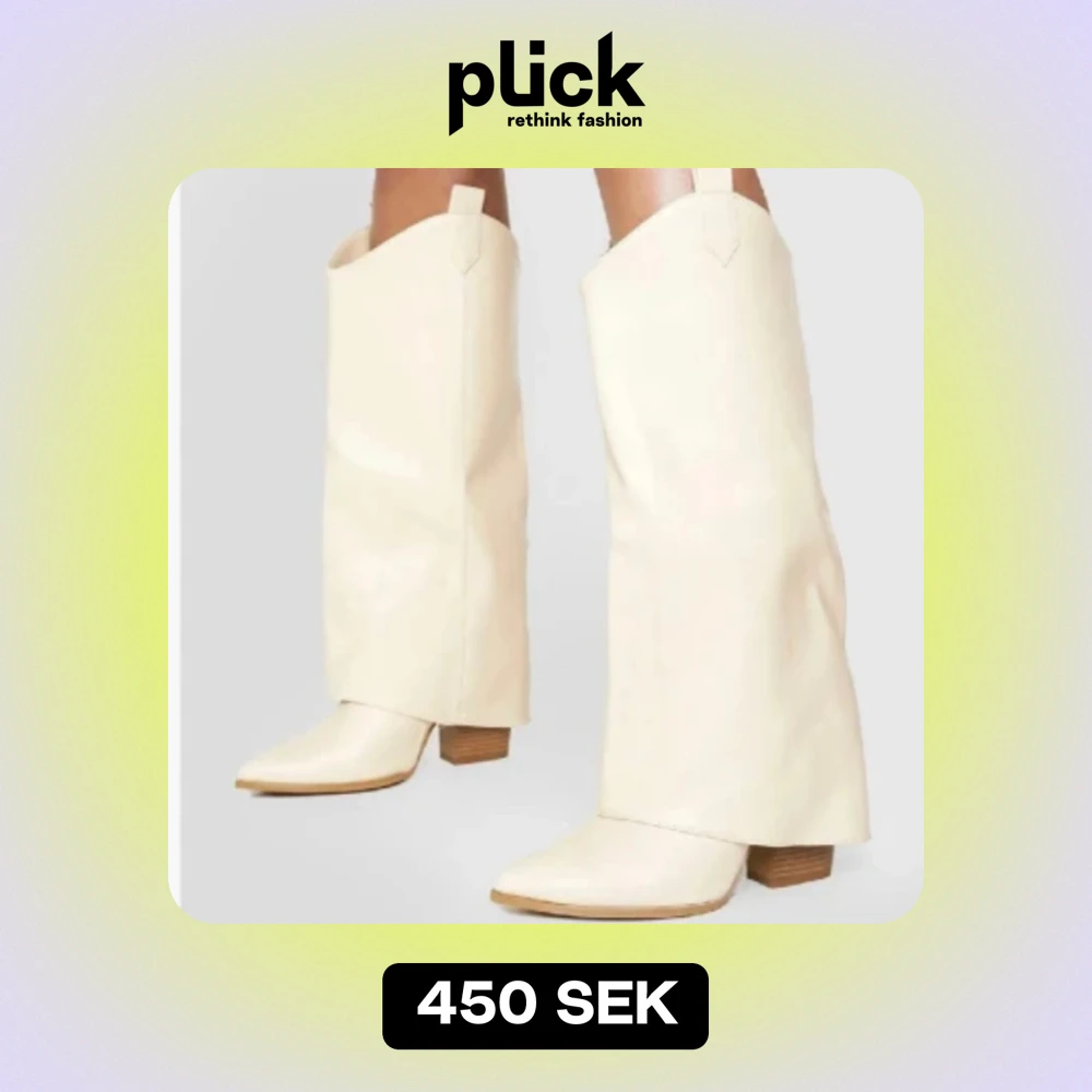 Ett par krämvita boots med träfärgad klack på ca 8cm. Sjukt snygga men tyvärr för höga i klacken för mig! Perfekta till klänning eller kjol och verkligen så snygga! Lite cowboy känsla på dem enligt mig. Köpte dem här för 450 och har endast testat