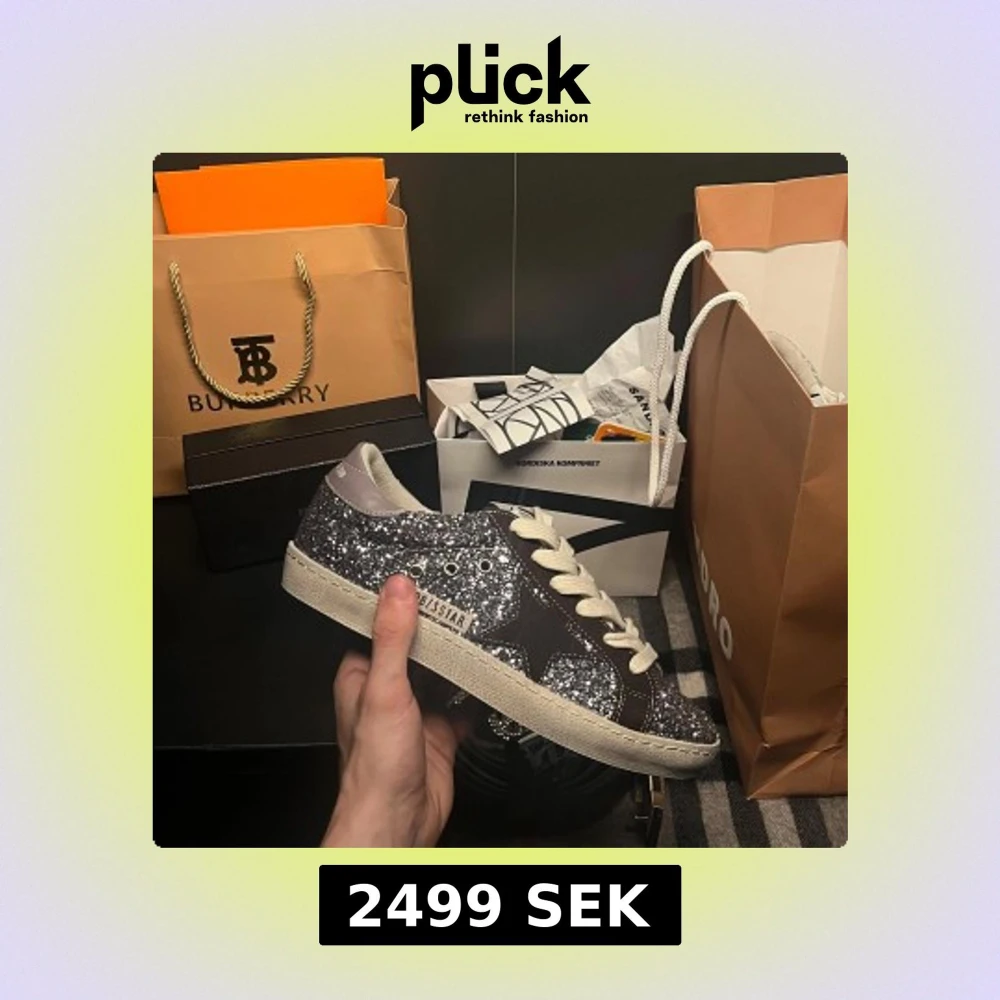 Unika och stiliga Golden Goose Superstars i en fantastisk kombination av glitter och brunt! Dessa skor i storlek 38 är perfekta för både vardag, fest och för dig som vill ha något extra. Med sin trendiga design ger de ett lyft till varje outfit och passar både till avslappnade och mer festliga tillfällen. Tveka inte att höra av dig om du har några frågor eller funderingar – vi ser fram emot att höra från dig! OBS box och kvitto ingår ej