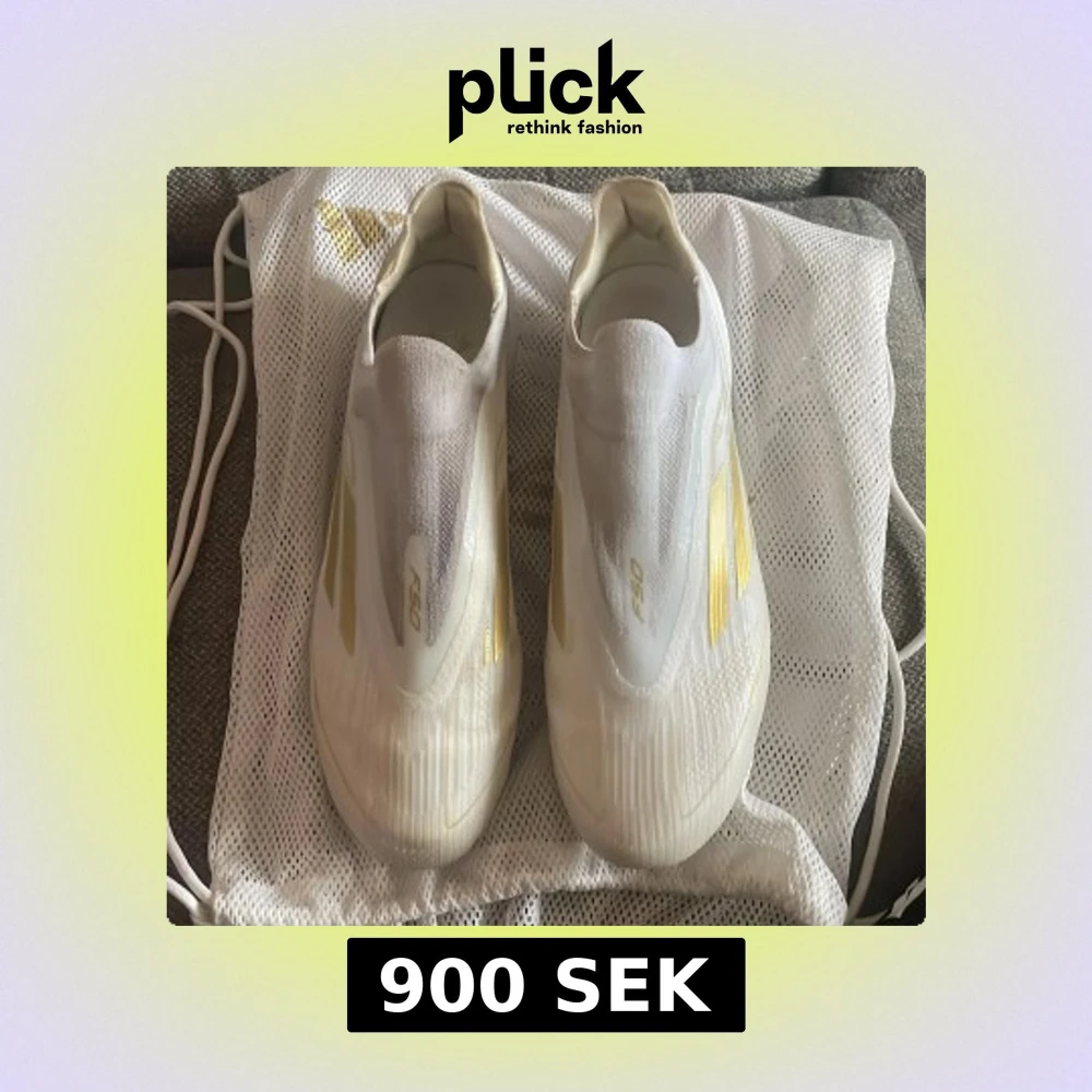 Säljer ett par stilrena vit guldiga Adidas F50 ELITE laceless. Fungerar på konstgräs och på naturgräs. Använt dessa i endast 1 månad. Ordinarie pris 3149 på Unisport. Storlek 44, UK 9,5 eller US 10,5. Lägre pris kan diskuteras.