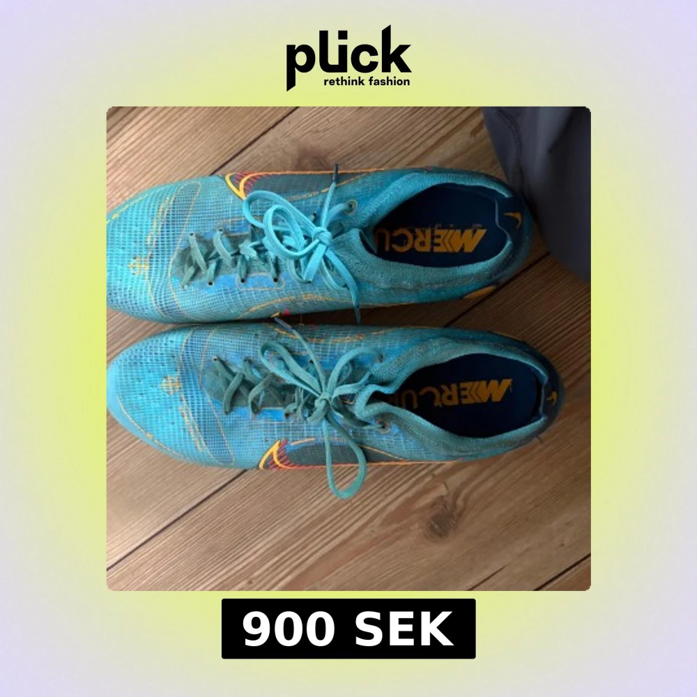 Snygga fotbollsskor från Nike med orange och gula detaljer. Skorna har snörning och en rund tå, perfekt för fotbollsplanen. De har en slitstark sula med dobbar för bra grepp.