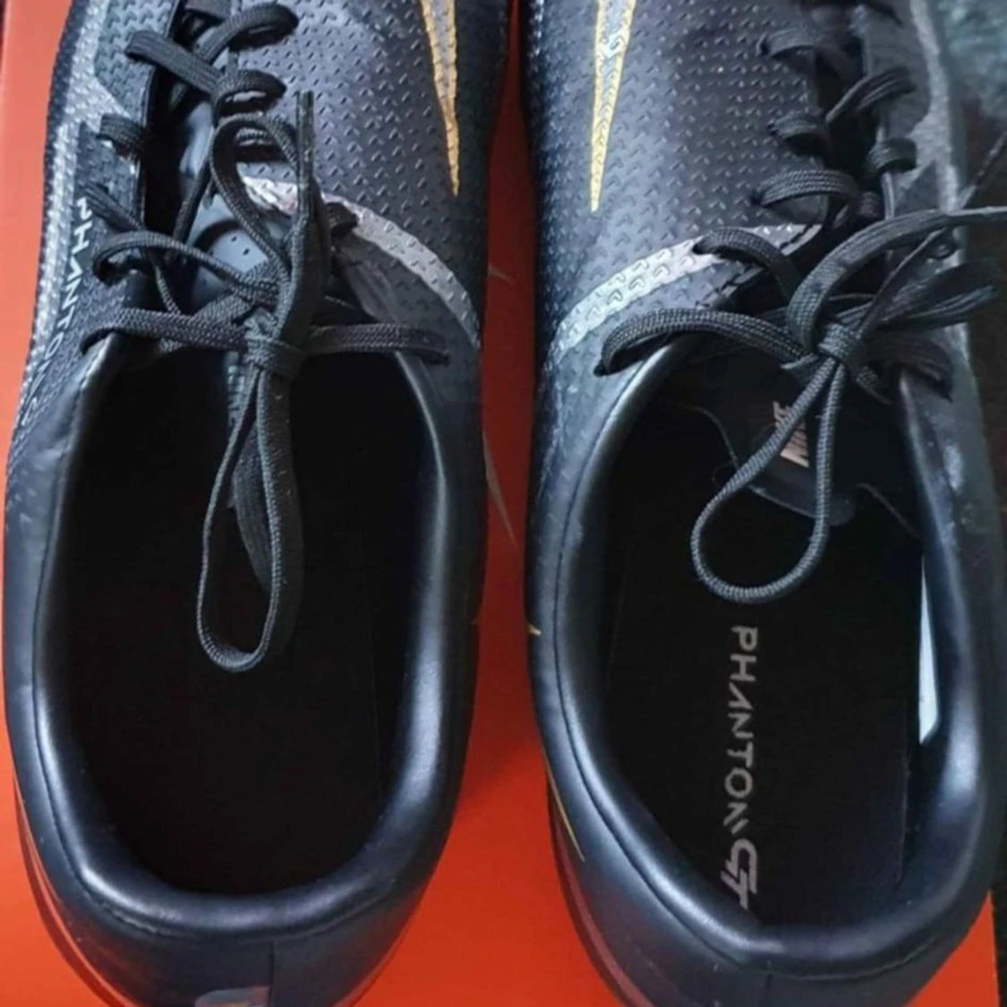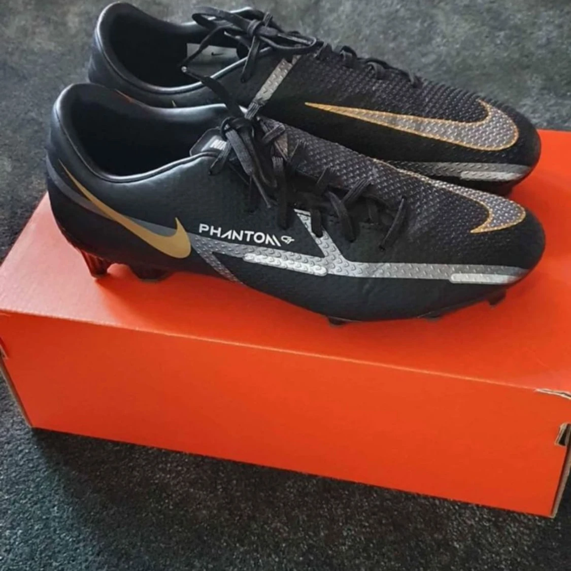 Fotbollsskor använda 1 träning 1 match storlek 42 de passade inte min fot och blev skadad så körde inte fotboll på 1 månad när jag kom tillbaka köpte jag nya skor av en vän så de hära skorna satt i källaren ett bra tag kan försöka hitta kvittot