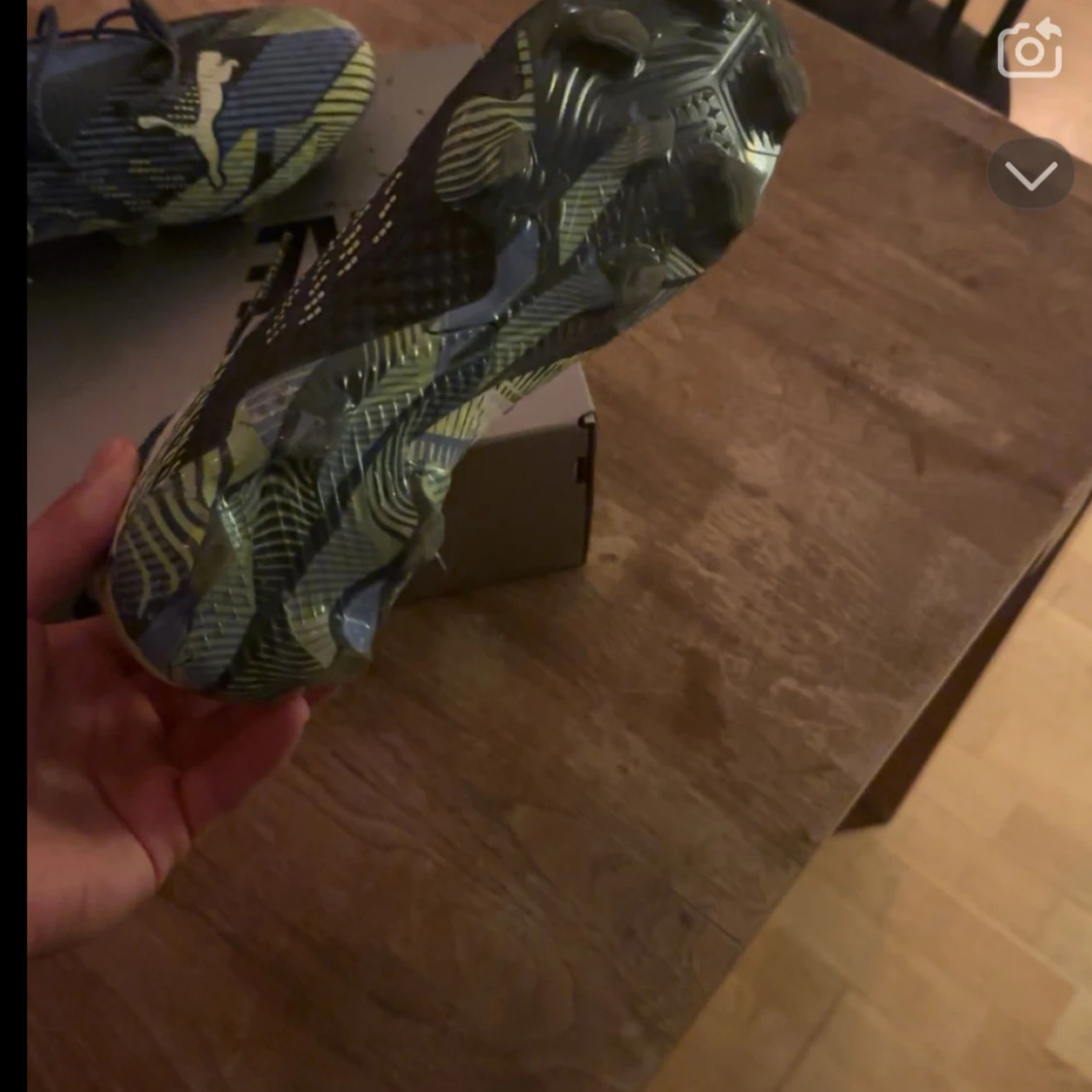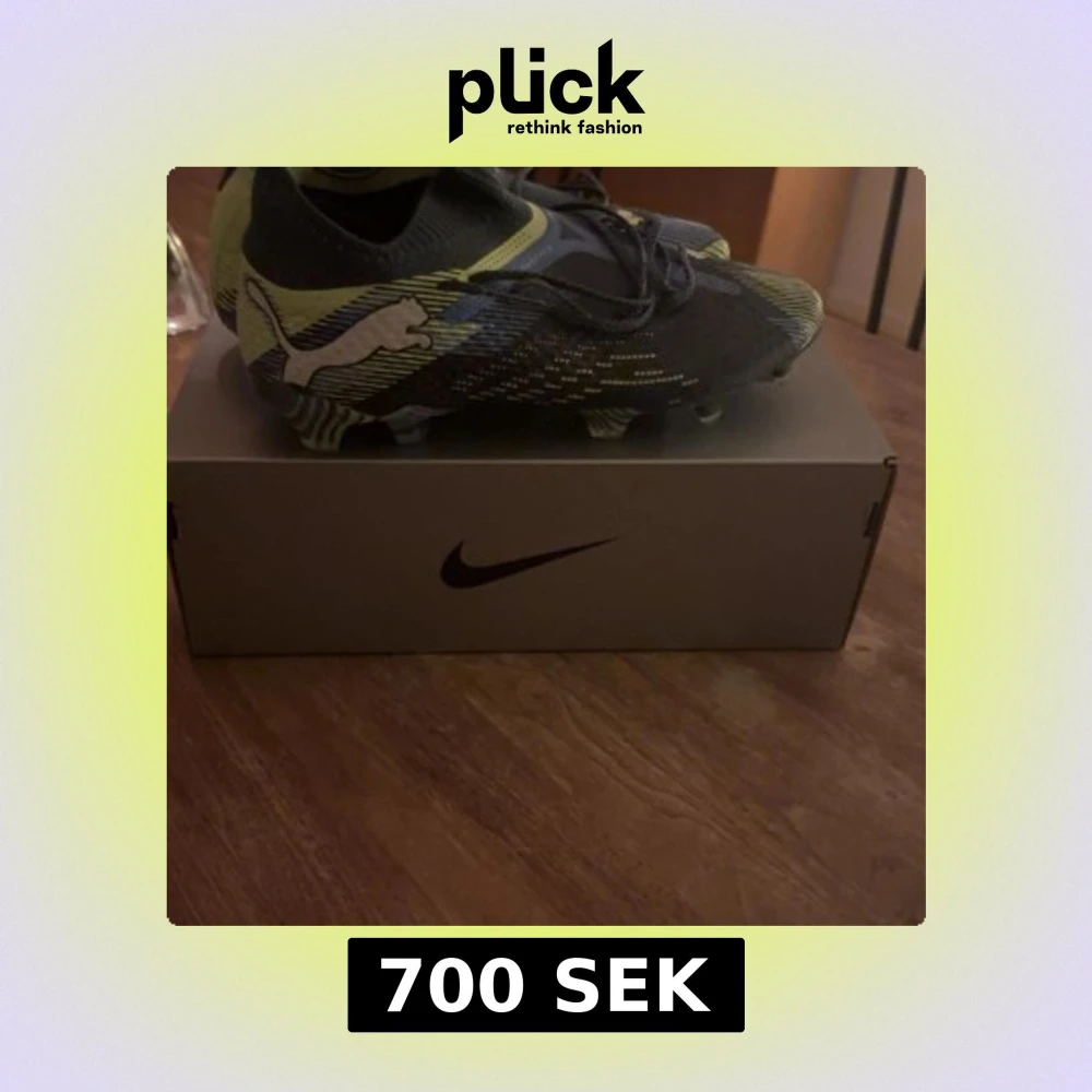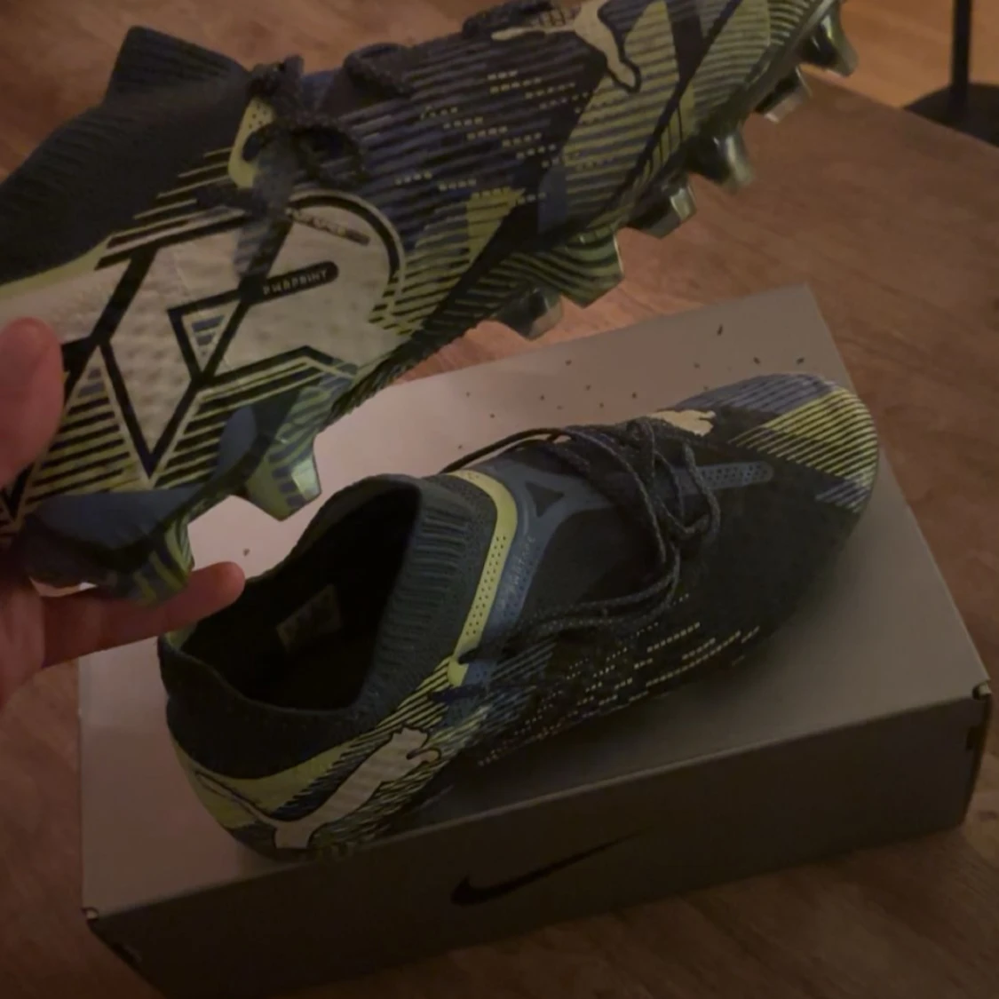 Säljer ett par Puma Future Z elite fotbollsskor i blått och gult med coolt mönster och stora vita Puma-loggor på sidorna. Skorna har snörning, stickad ovandel och mönstrad sula med dobbar för bästa grepp på planen. Perfekta för dig som vill sticka ut på fotbollsplanen. 10/10 skick har använt 1 gång