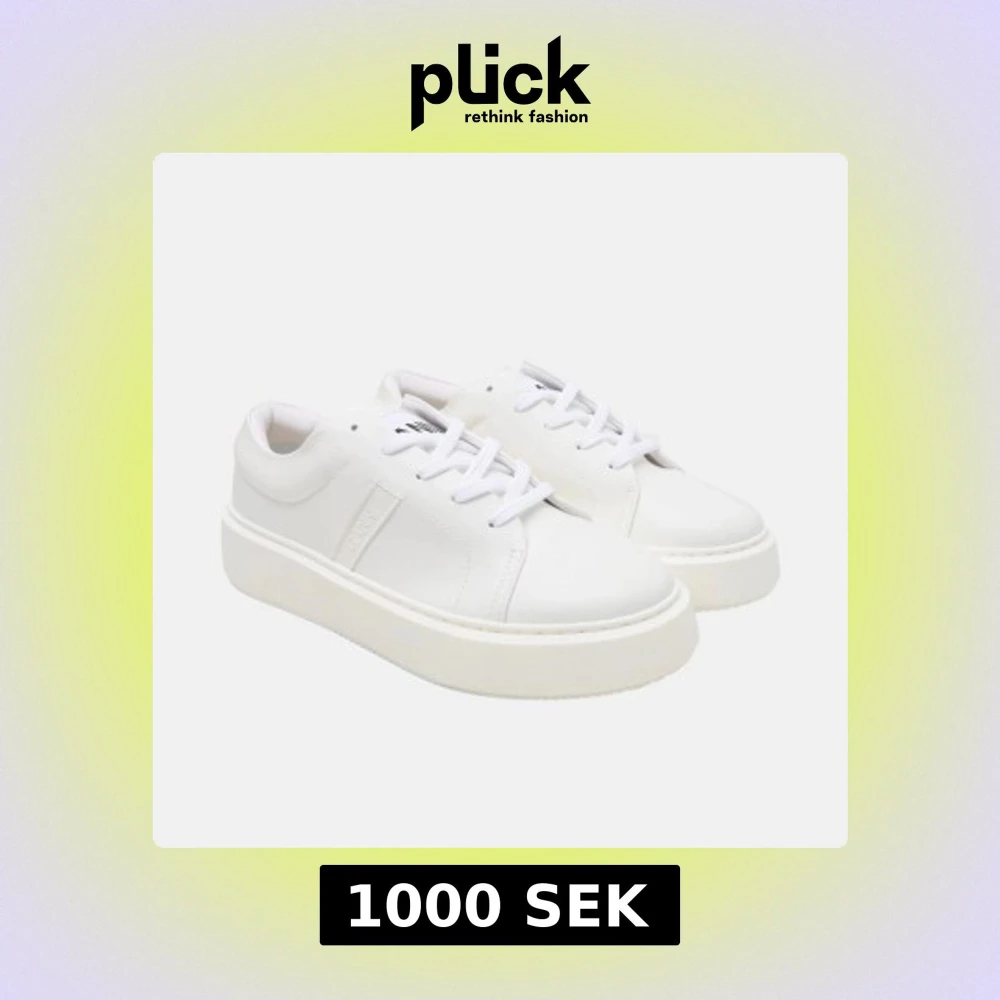 Snygga vita sneakers från Ganni med en stilren design. Skorna har en tjock sula och klassisk snörning. Perfekta för en trendig look. Använda en gång, ny pris 2000kr.