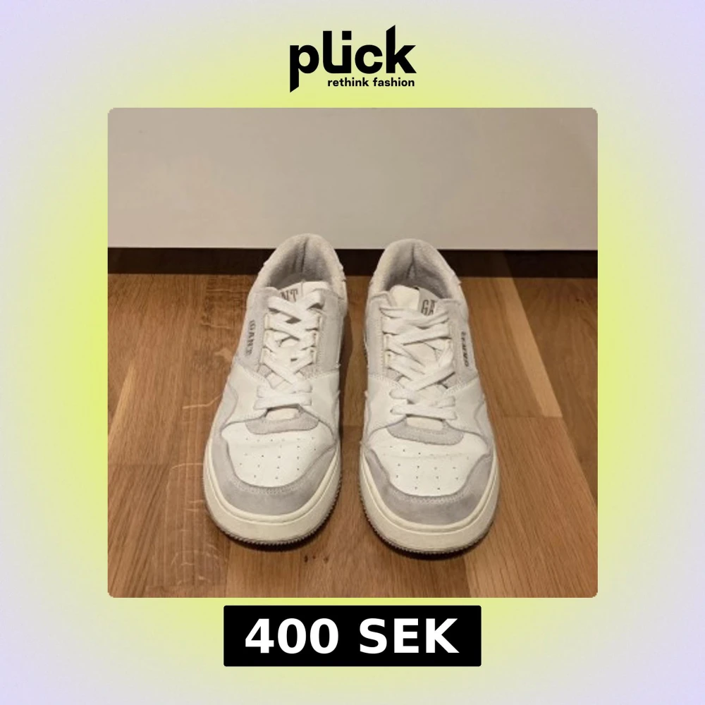Snygga vita sneakers från Gant med detaljer i ljusgrå mocka och skinn. Klassisk låg modell med rund tå, perforerade partier och tydlig logga på sidan och plös. Skorna har snörning och en platt, mönstrad sula för extra grepp.
