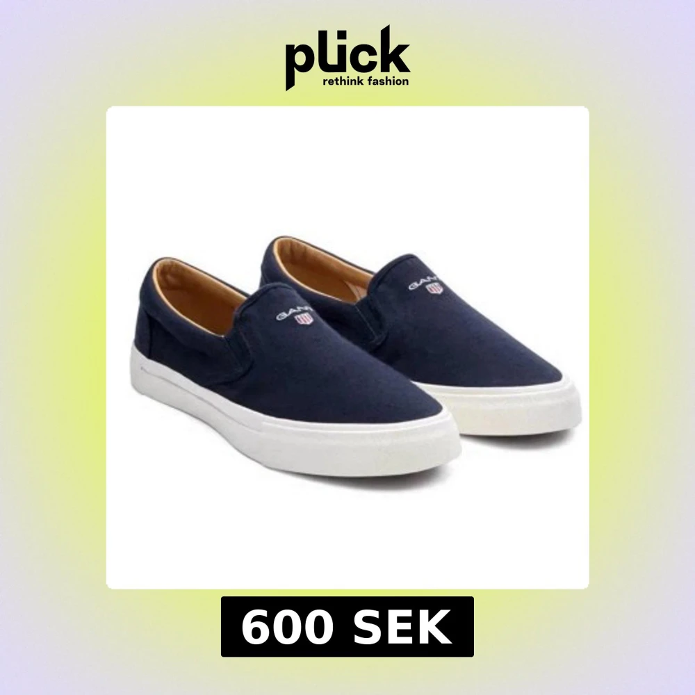 Helt nya i kartong. Snygga marinblå slip-on sneakers från Gant med vit sula och broderad logga framtill. Skorna är i bomullstyg och har en klassisk, stilren design som passar perfekt till jeans eller shorts. Bekväma och lätta att ta på.