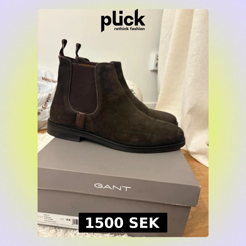 Snygga Chelsea boots från GANT i mörkbrunt mocka. Endast provade utomhus en gång men var för stora (se bild på undersidan)