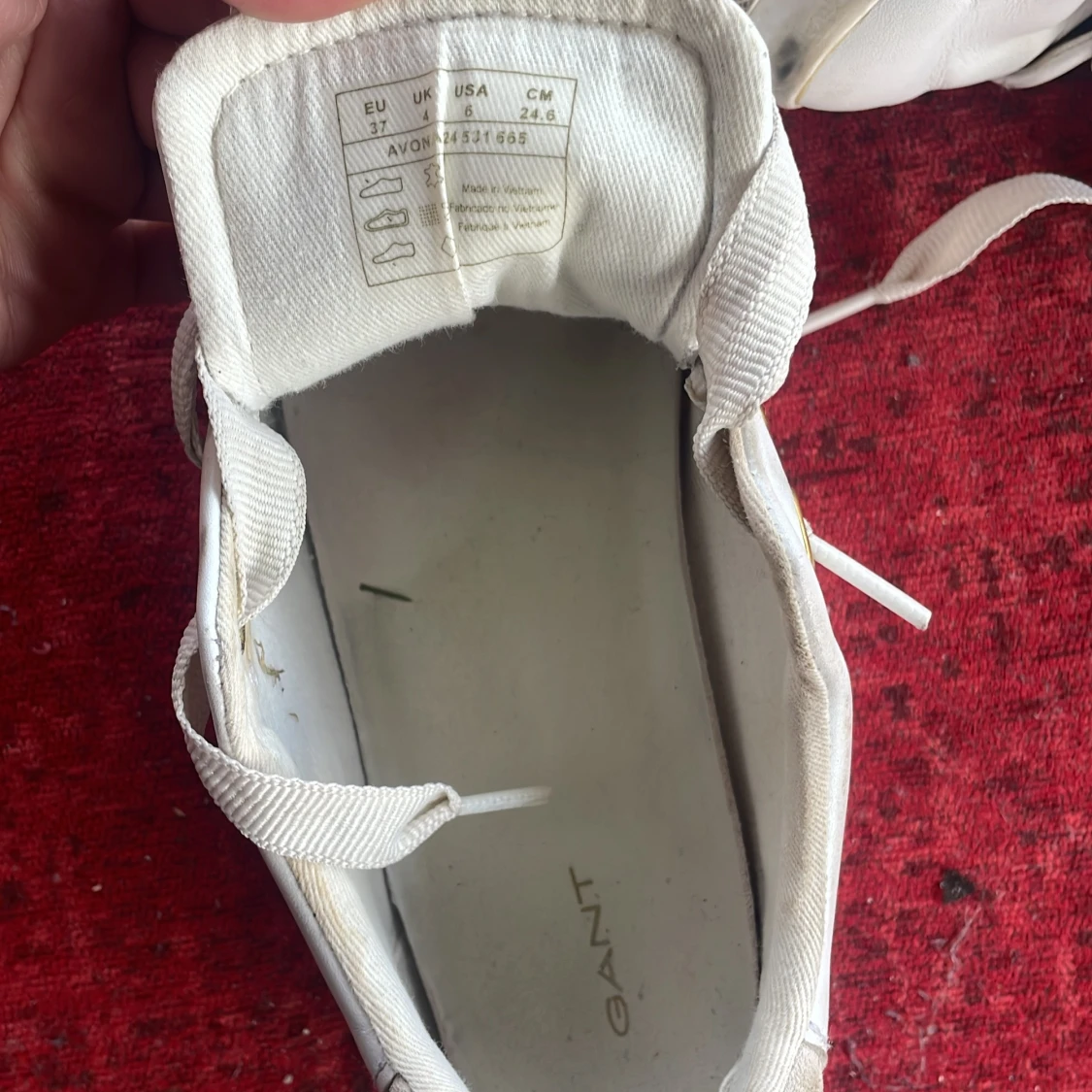 Snygga vita sneakers från Gant med snörning och guldfärgade detaljer. Skorna har en bekväm passform och en stilren design med en mjuk vaddering vid hälen för extra komfort.