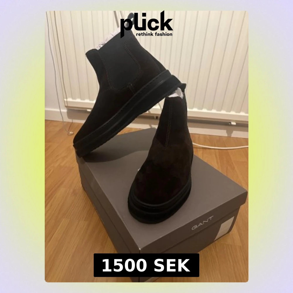Säljer ett par mörkbruna herrskor från GANT i mocka. Skorna är helt nya och endast provade kort inomhus, aldrig använda utomhus. De kommer i originalkartong och är i perfekt nyskick. Detta är ett stilrent och kvalitativt par som fungerar utmärkt både till vardag och mer uppklädda tillfällen. Ordinarie pris ligger runt 2000kr, men säljs då de tyvärr inte passade mig i storlek.