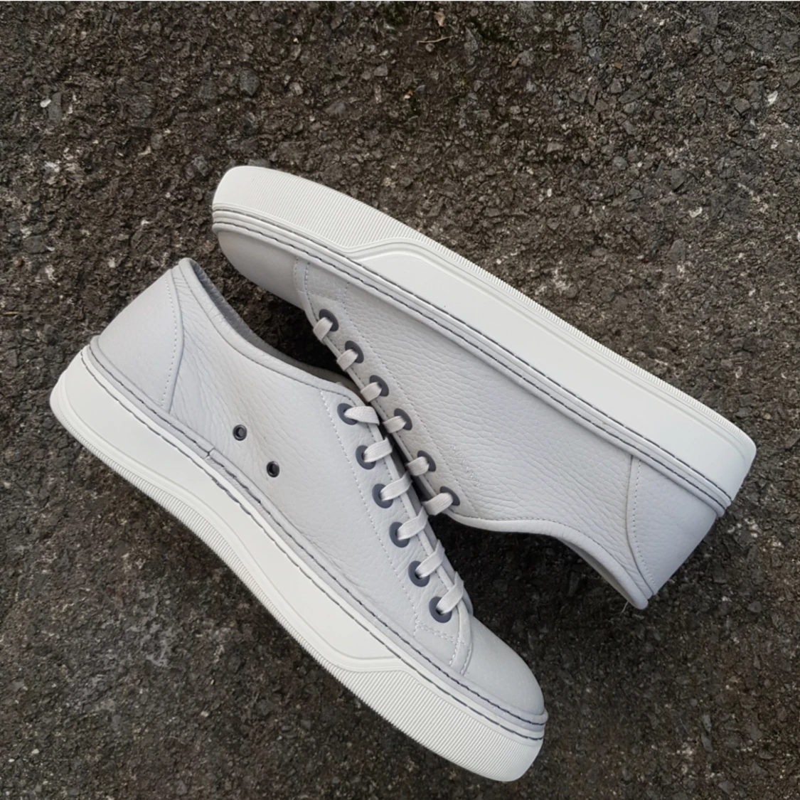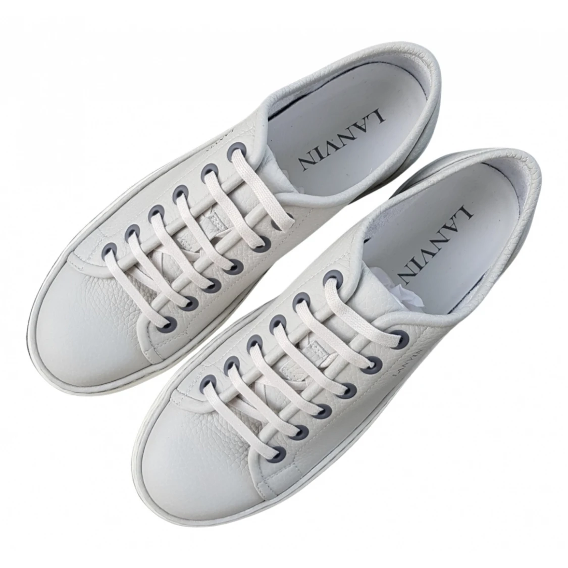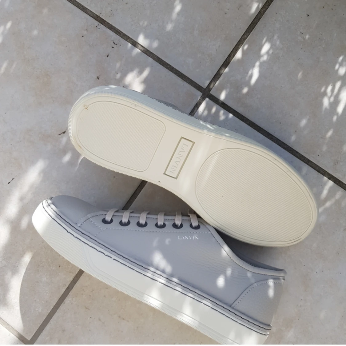 Sjukt snygga och stilrena ”Lanvin basket cuir” i färgen vit/grå. Storlek 42 men passar även 43. Köpta på Vestiaire Collective. Tar även emot byten emot andra lanvins på dessa!
