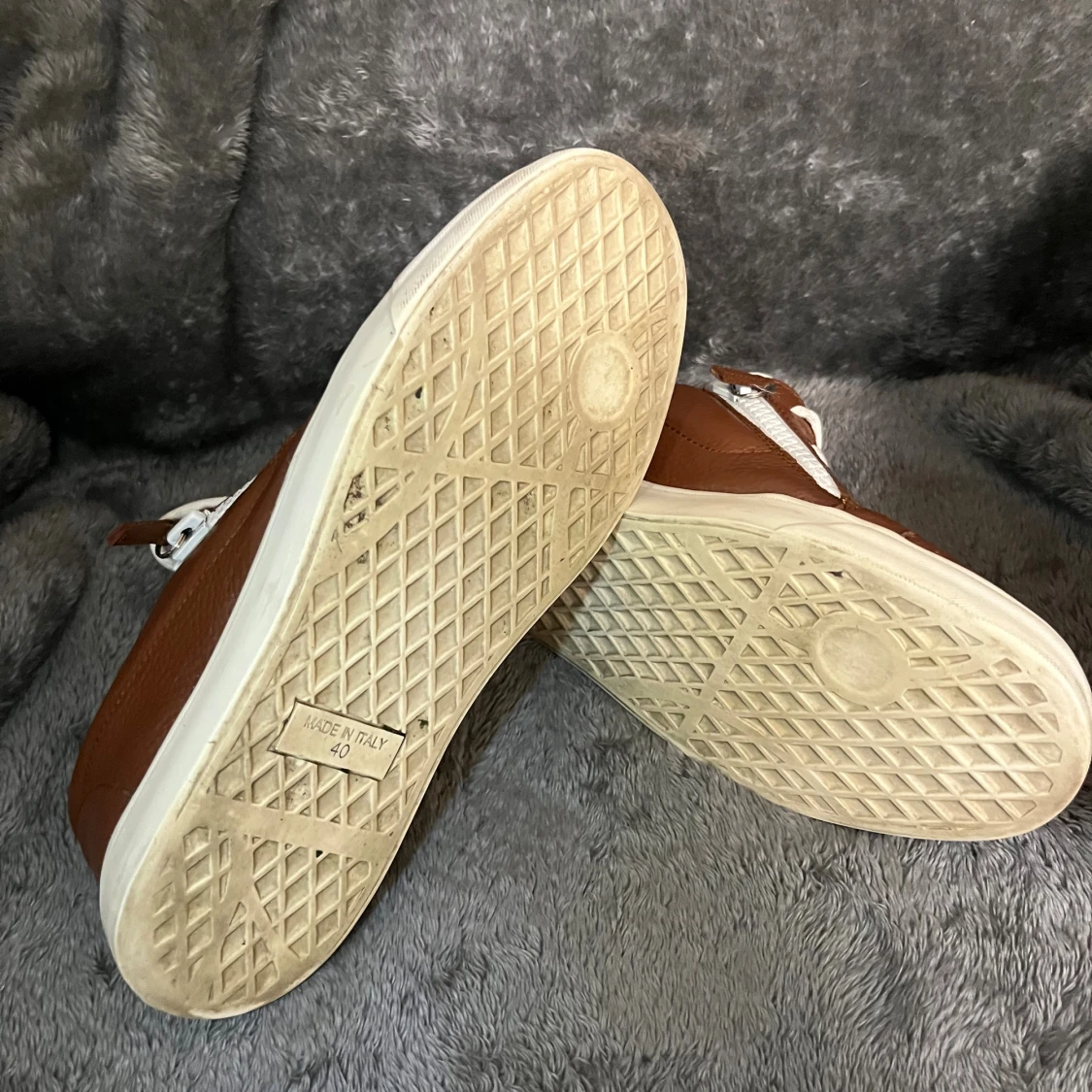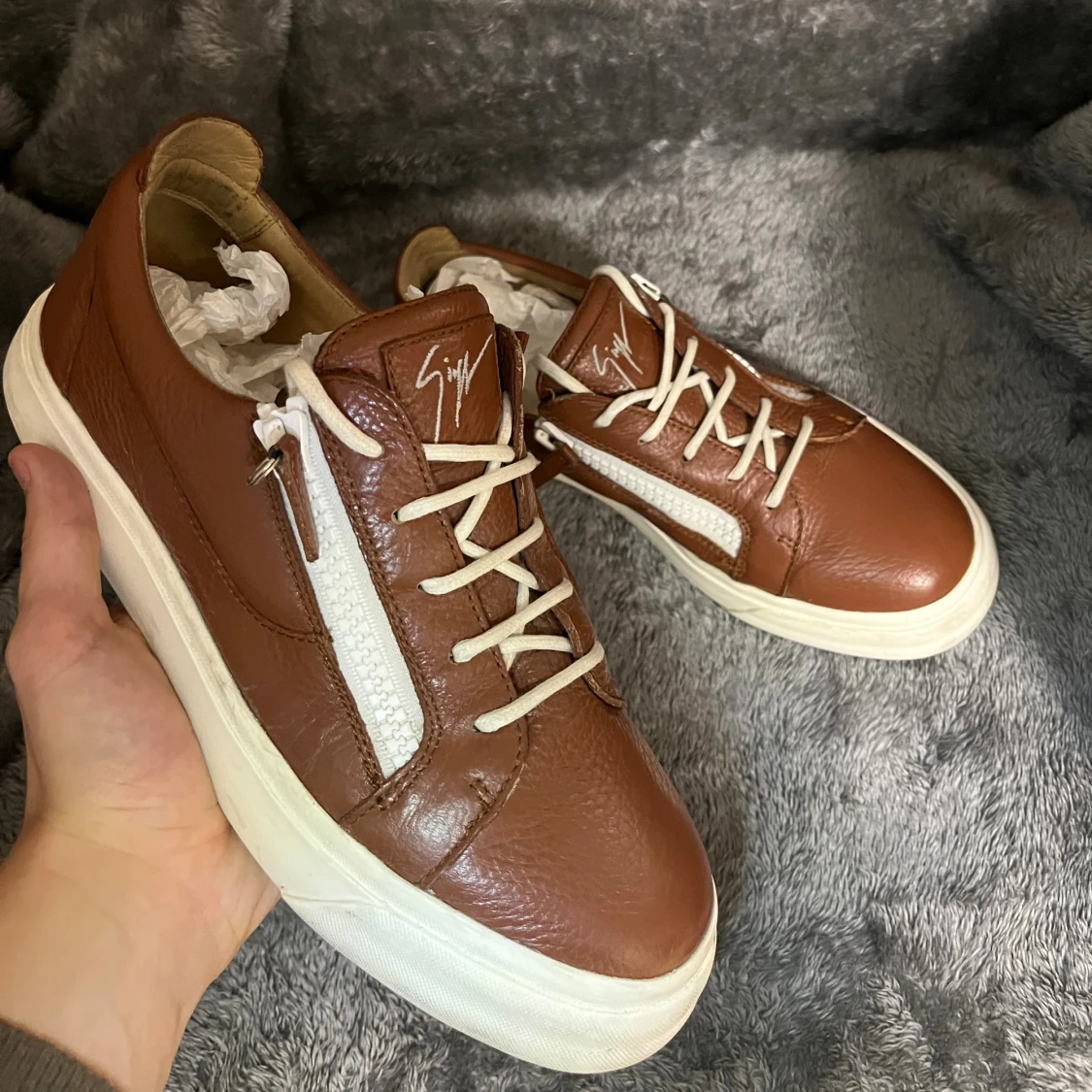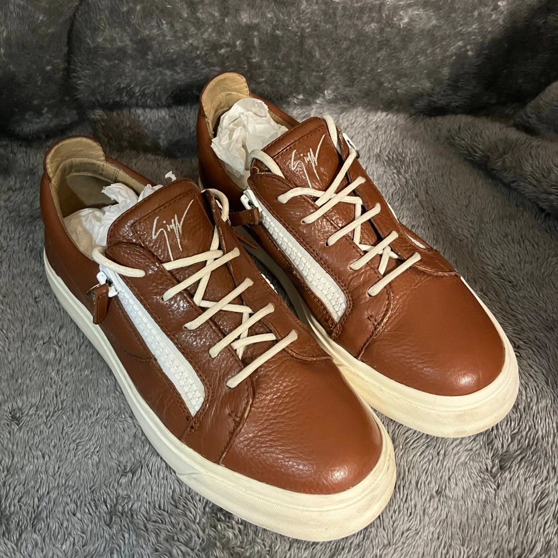 Snygga bruna sneakers från Giuseppe Zanotti i skinn, använda men i grymt bra skick! Inget og tillkommer! Skriv till mig vid frågor eller liknande! Priset är icke hugget i sten, kan diskuteras vid snabb och problemfritt köp!