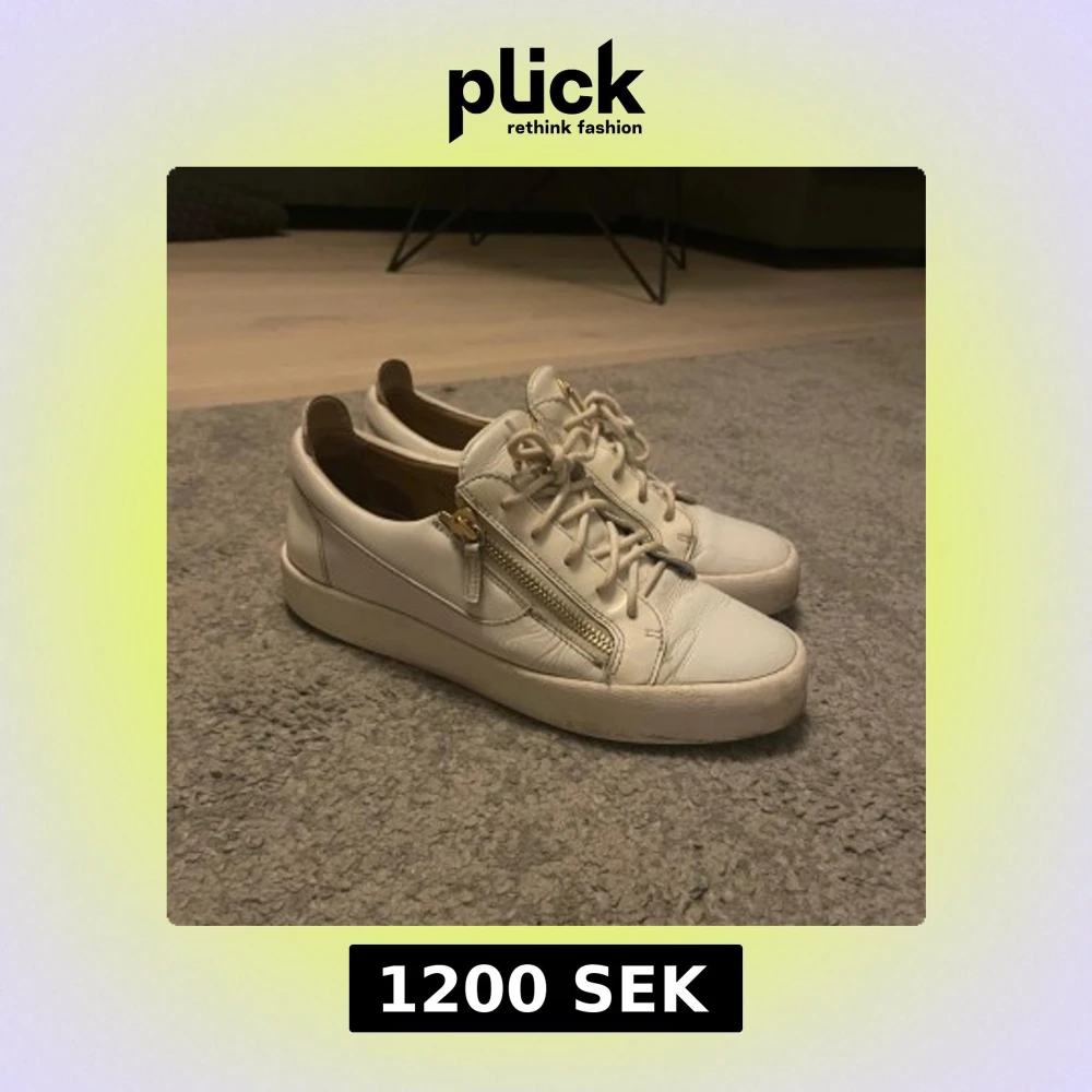 Snygga vita sneakers från Giuseppe Zanotti med guldfärgade dragkedjor på sidorna och guldfärgad logga på plösen. Skorna har snörning, platt sula och är tillverkade i skinn. Perfekt för dig som gillar exklusiv och stilren design.