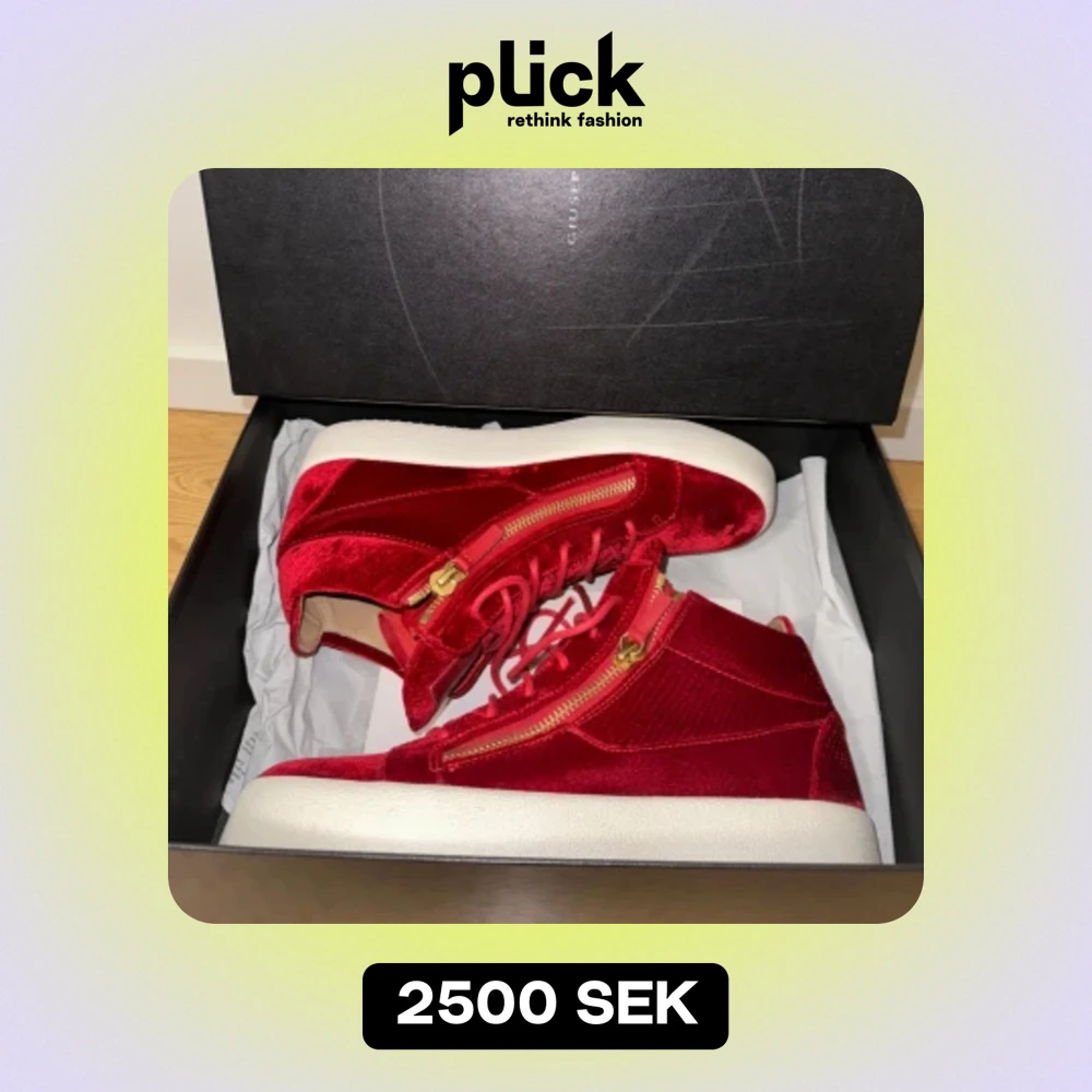 Giuseppe Zanotti Kriss Velvet Sneakers, i nyskick endast använda en gång. Inköpt på FARFETCH för 437,50€. Väldigt fina och unika skor för någon som vill skina ordentligt. Väldigt fin röd färg samt att tyget är otroligt!