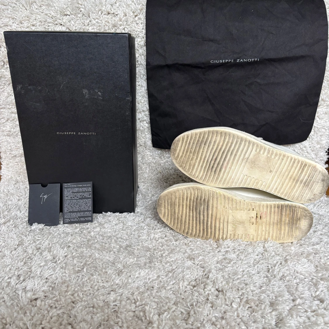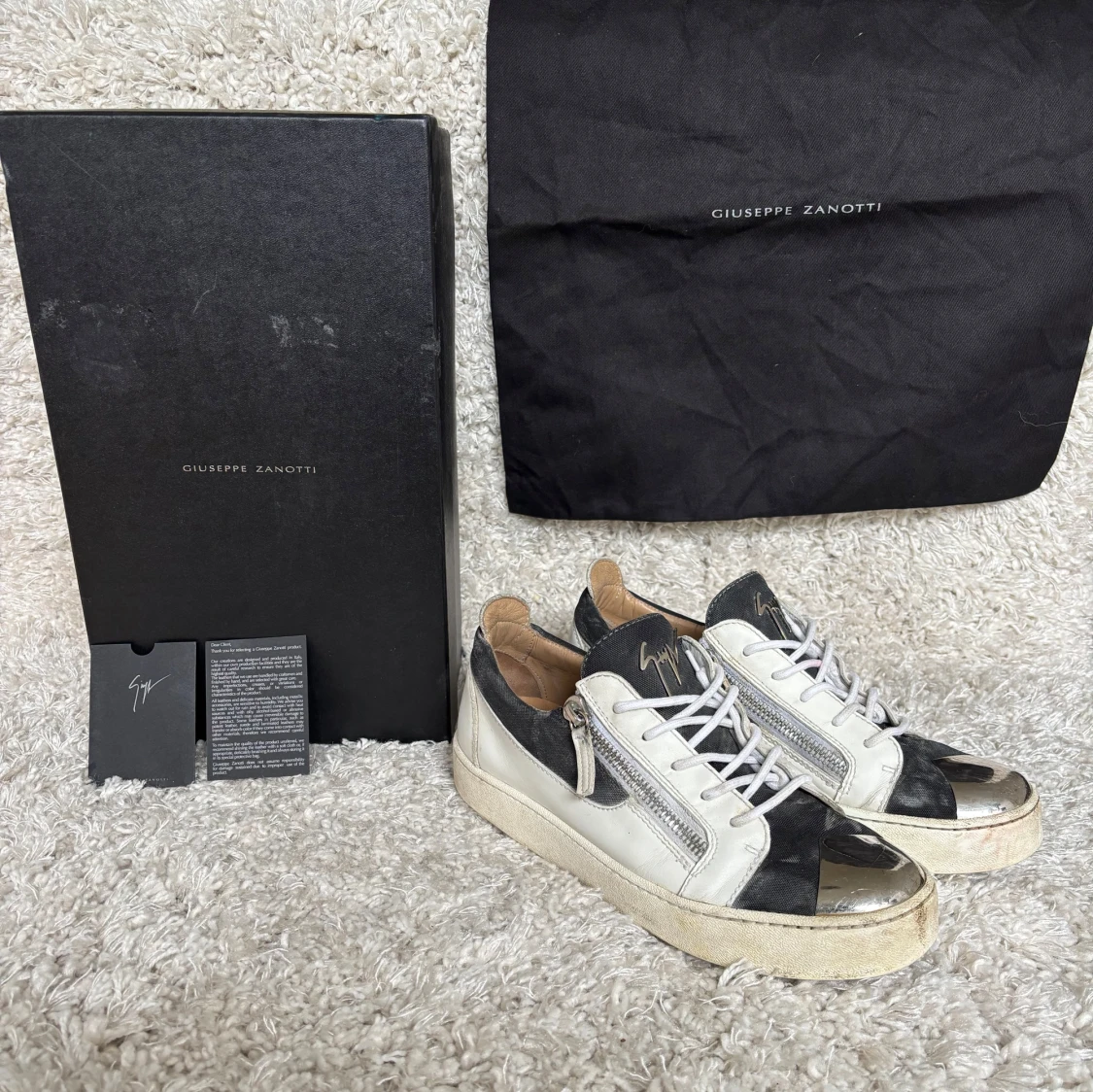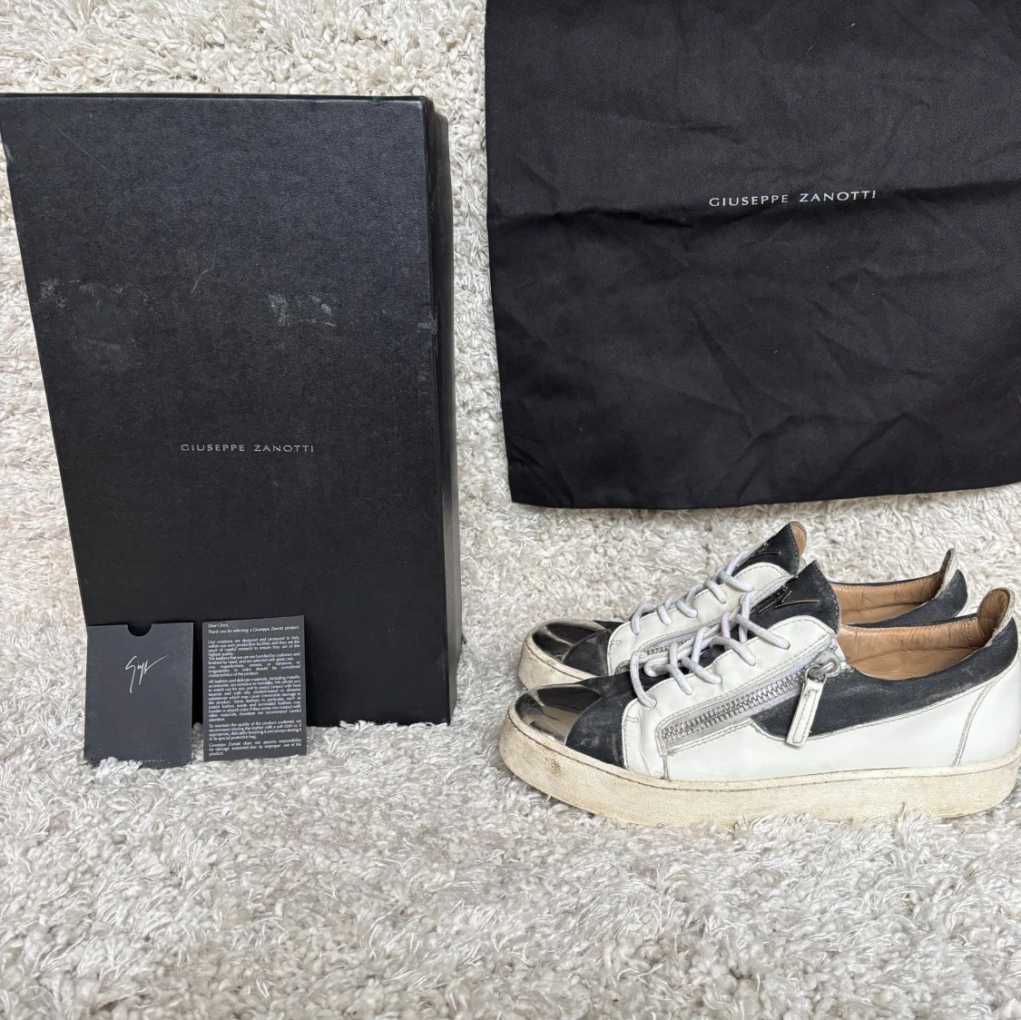 Tja säljer nu mina Giuseppes limited edition i storlek 42. Går inte att få tag i längre och köpte i Giuseppe butiken i Frankrike. Dock inget kvitto men allt på bilden följs med. Skorna är ganska slitna använt i några år nu. Miss färgning på snörerna och limmet på sulorna framme börjar lossna lite och sulorna har blivit slitna. Dock är dom riktigt feta fortfarande speciellt nu till sommaren. Skriv vid funderingar om slitningarna eller andra frågor pris kan diskuteras!!!